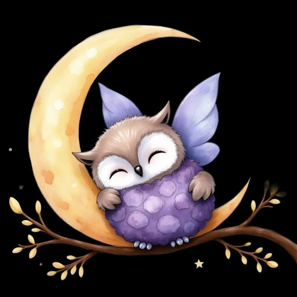 This charming sticker features a dreamy owl design.