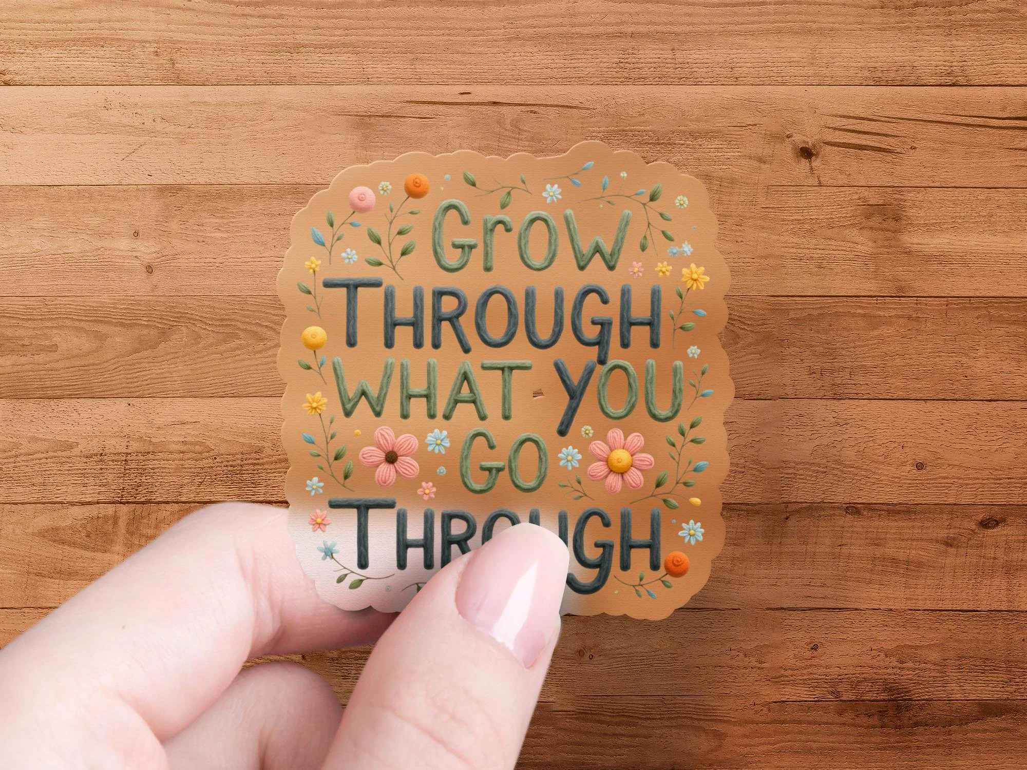 Grow Through What You Go Through Sticker, Floral Sticker, Motivational Stickers, Inspirational Quote Stickers, Encouragement Sticker