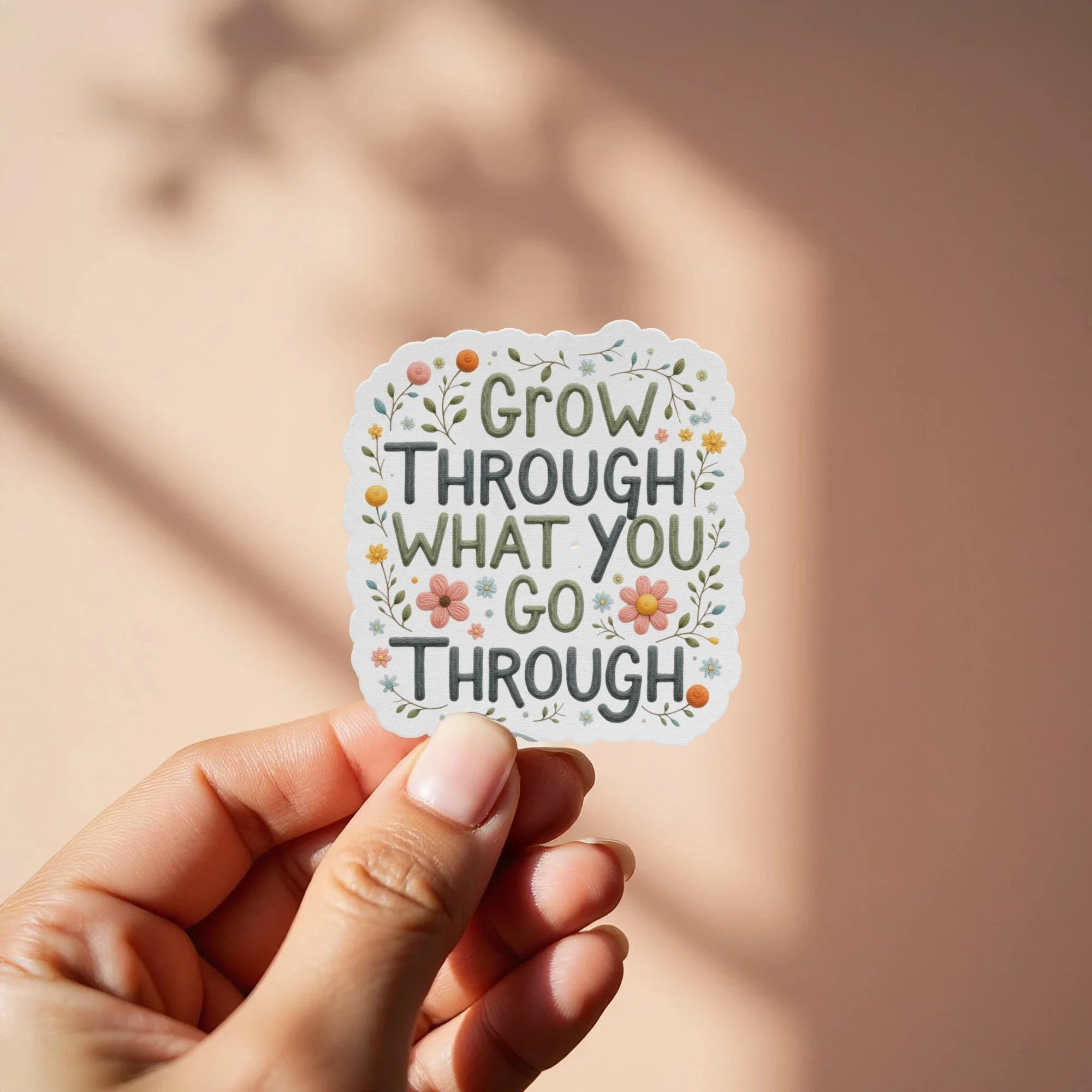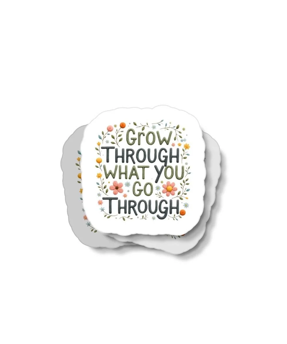 Elevate your everyday items with our inspiring "Grow Through What You Go Through" sticker. This beautifully designed sticker features a positive message surrounded by charming floral elements, perfect for adding a touch of motivation and style to your belongings.