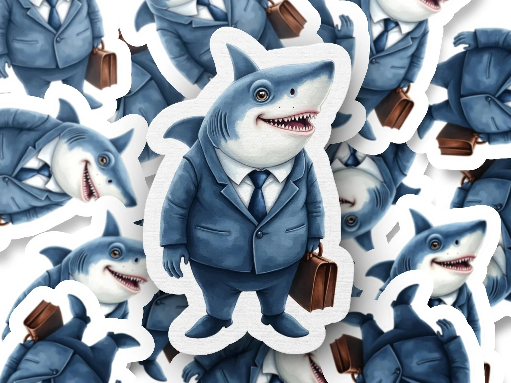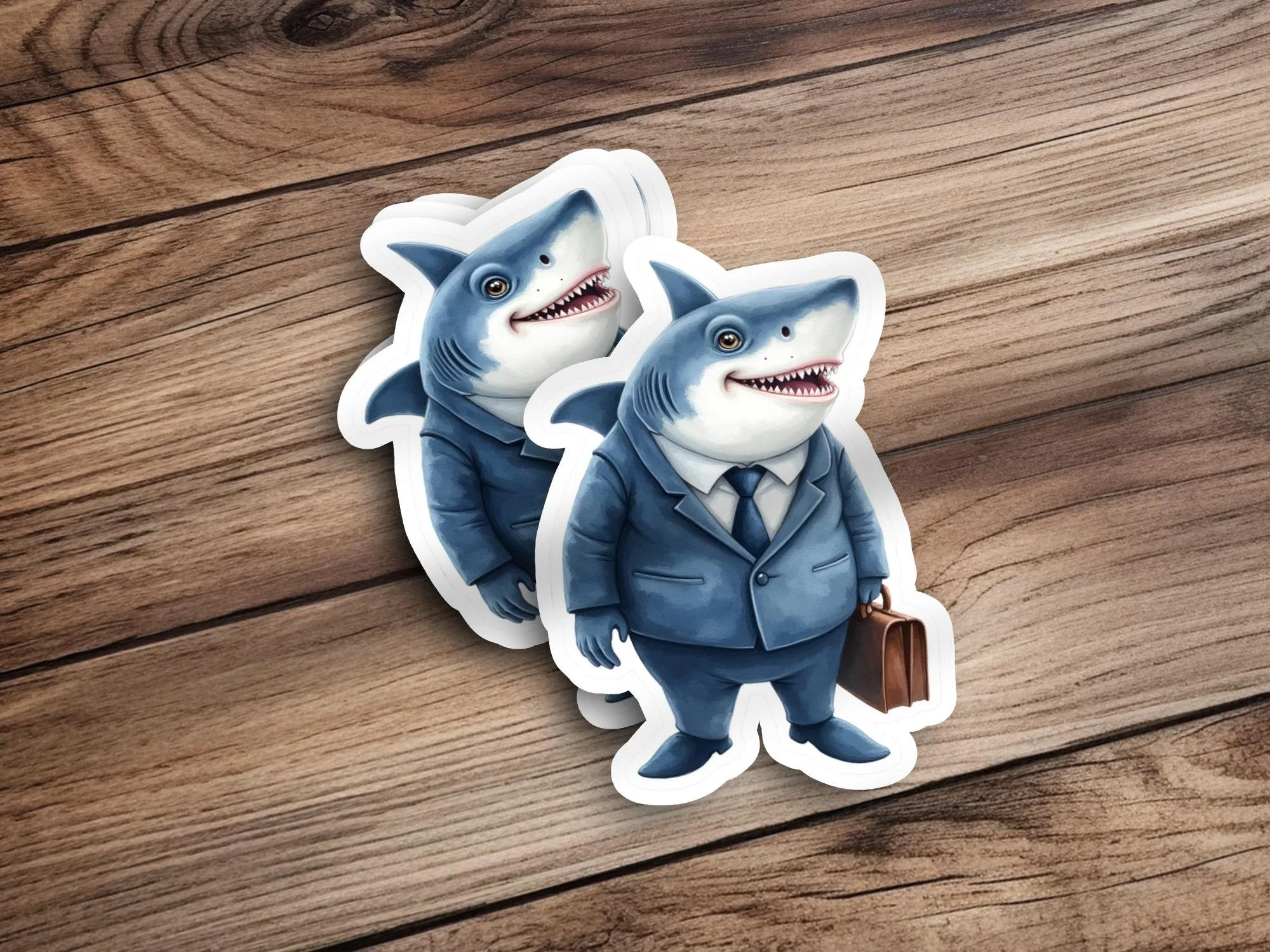 Add a touch of humor to your everyday items with this "Business Shark" sticker. This fun design features a shark dressed in a business suit and carrying a briefcase, blending the unexpected with professional attire. Perfect for those with a quirky sense of humor.