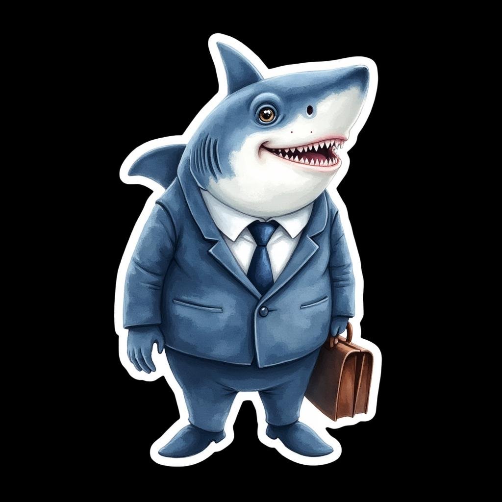 Business Shark Sticker, Funny Animal Sticker, Briefcase Shark, Cartoon Shark Art, Lawyer Shark Gift, Unique Stickers, Water Bottle Sticker