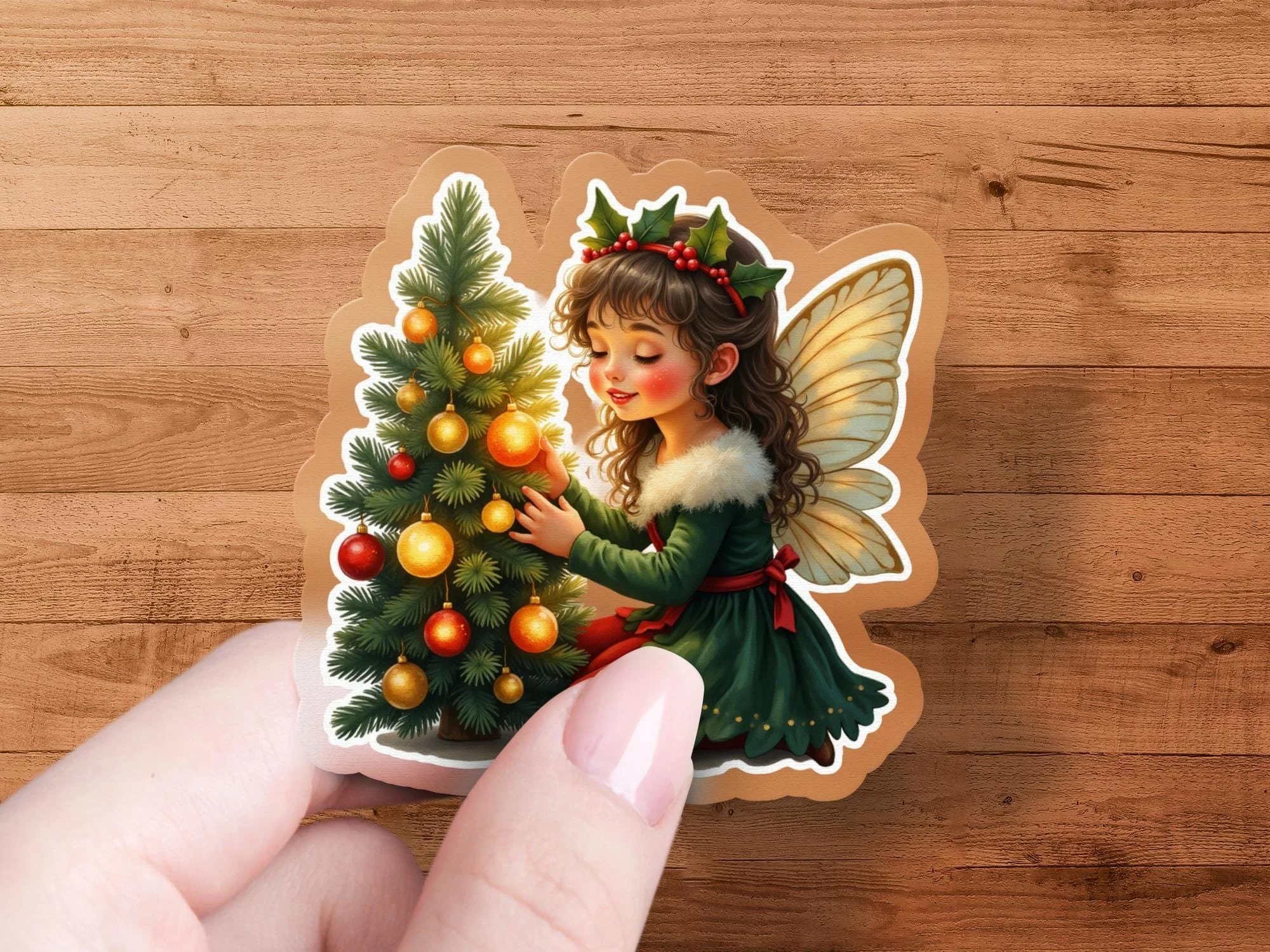 Christmas Fairy Sticker, Cute Holiday Decor, Christmas Tree Sticker, Festive Art Sticker, Whimsical Fairy Gift, Gift for Christmas