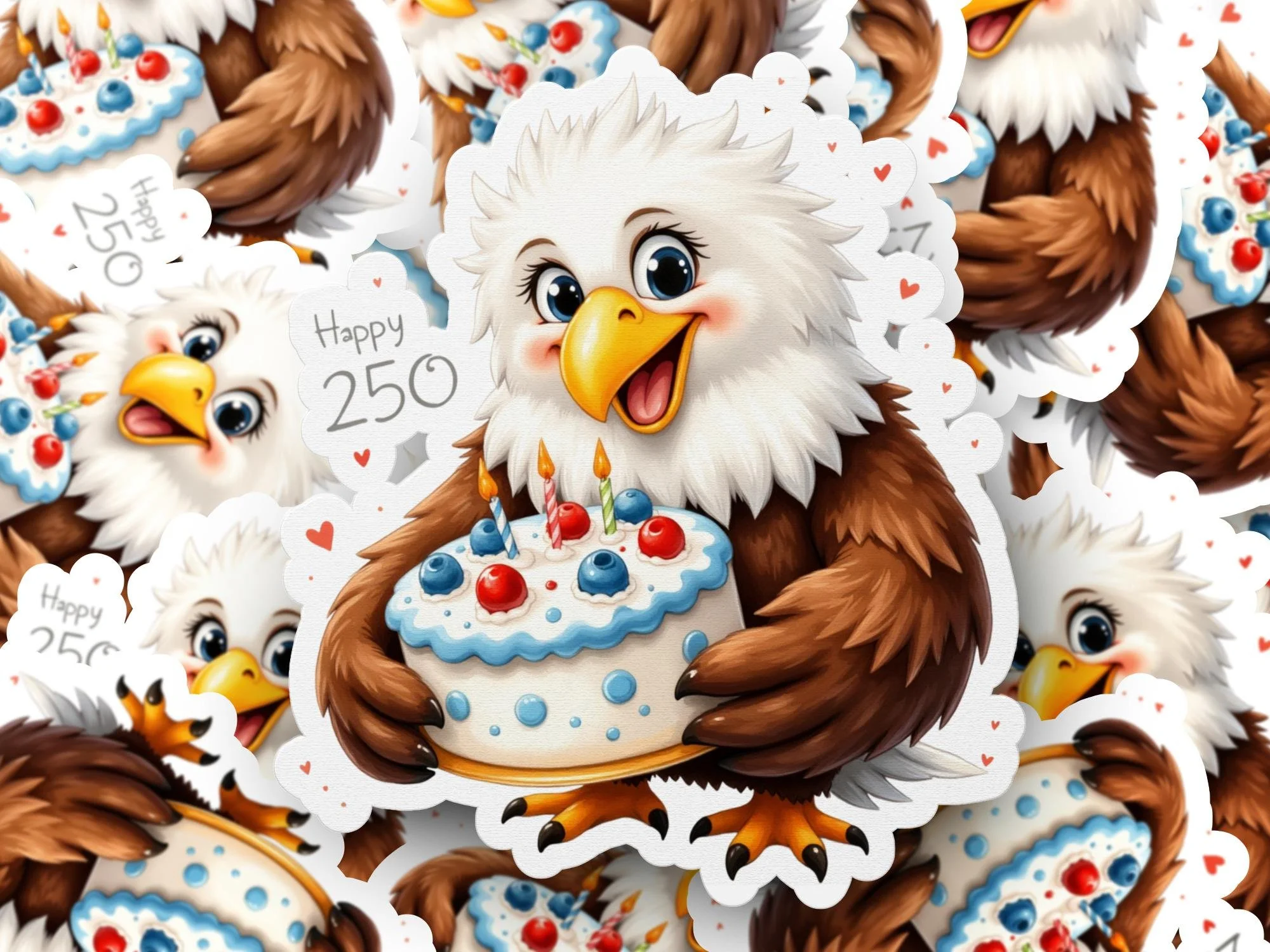 Cute Eagle Sticker, Cartoon Animal Sticker, Birthday Cake Sticker, AI-assisted Image, Join our Mailing list for the most up-to-date projects