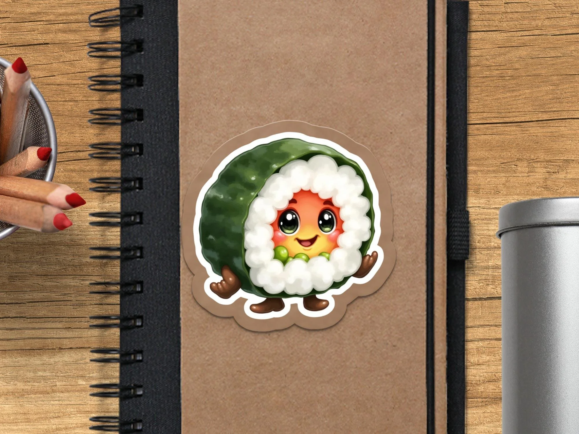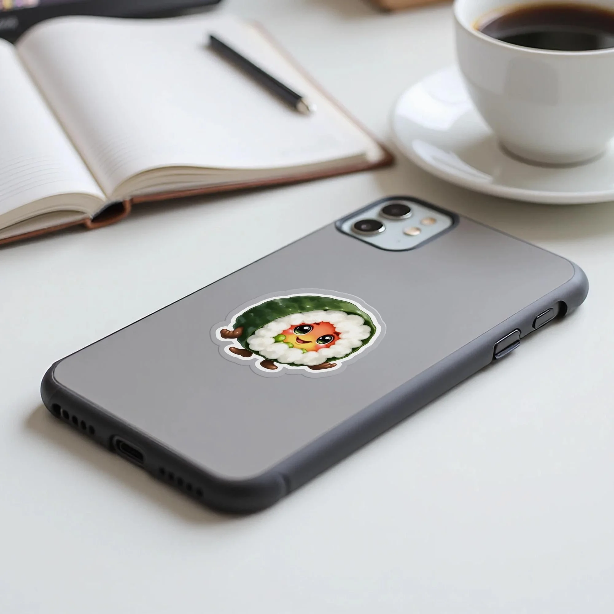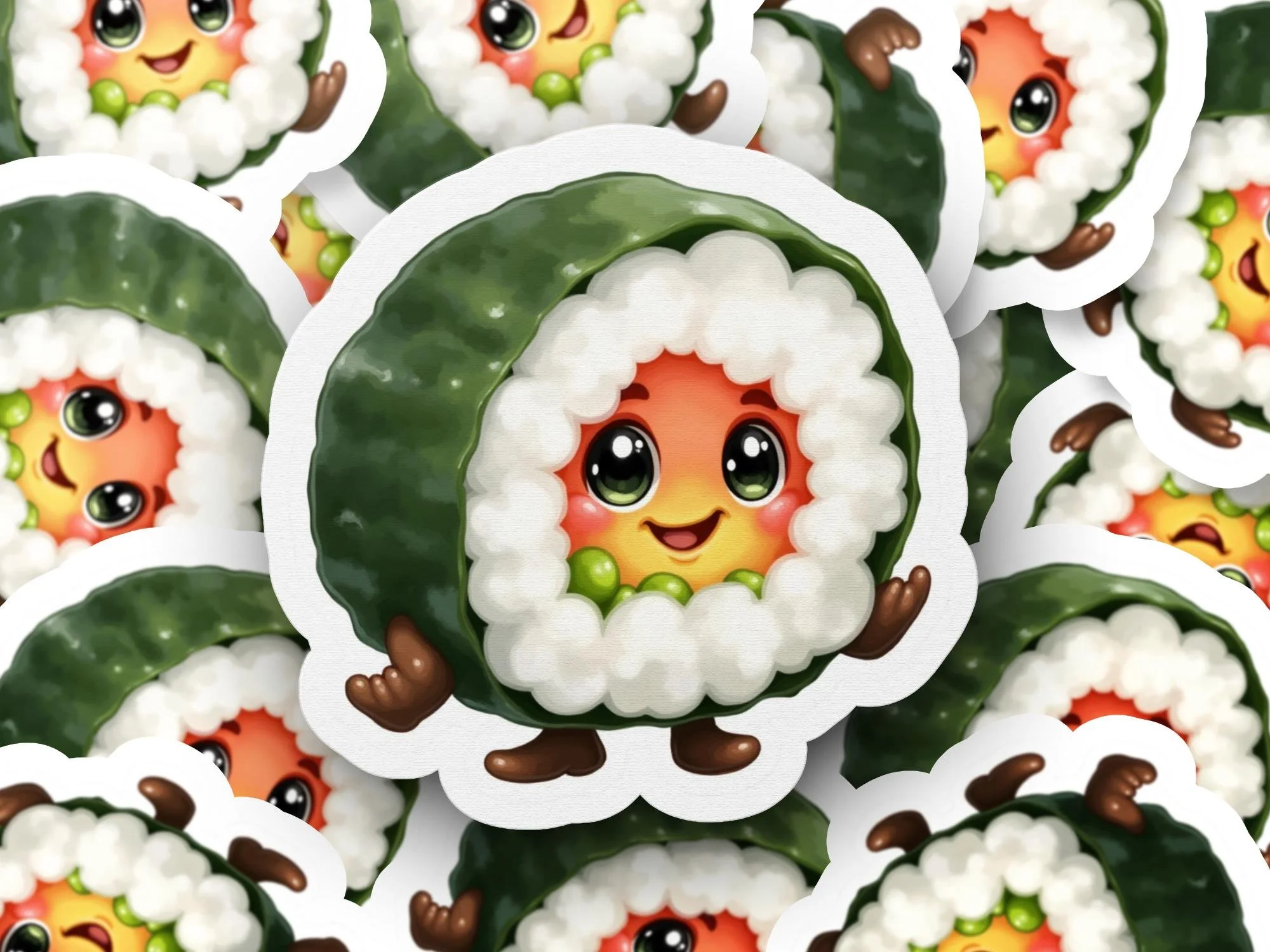 Add a dash of adorable to your life with this cute sushi roll sticker! This kawaii design features a smiling sushi character. Perfect for sushi lovers and fans of Japanese culture. Decorate your laptop, water bottle, or notebook with this unique decal.