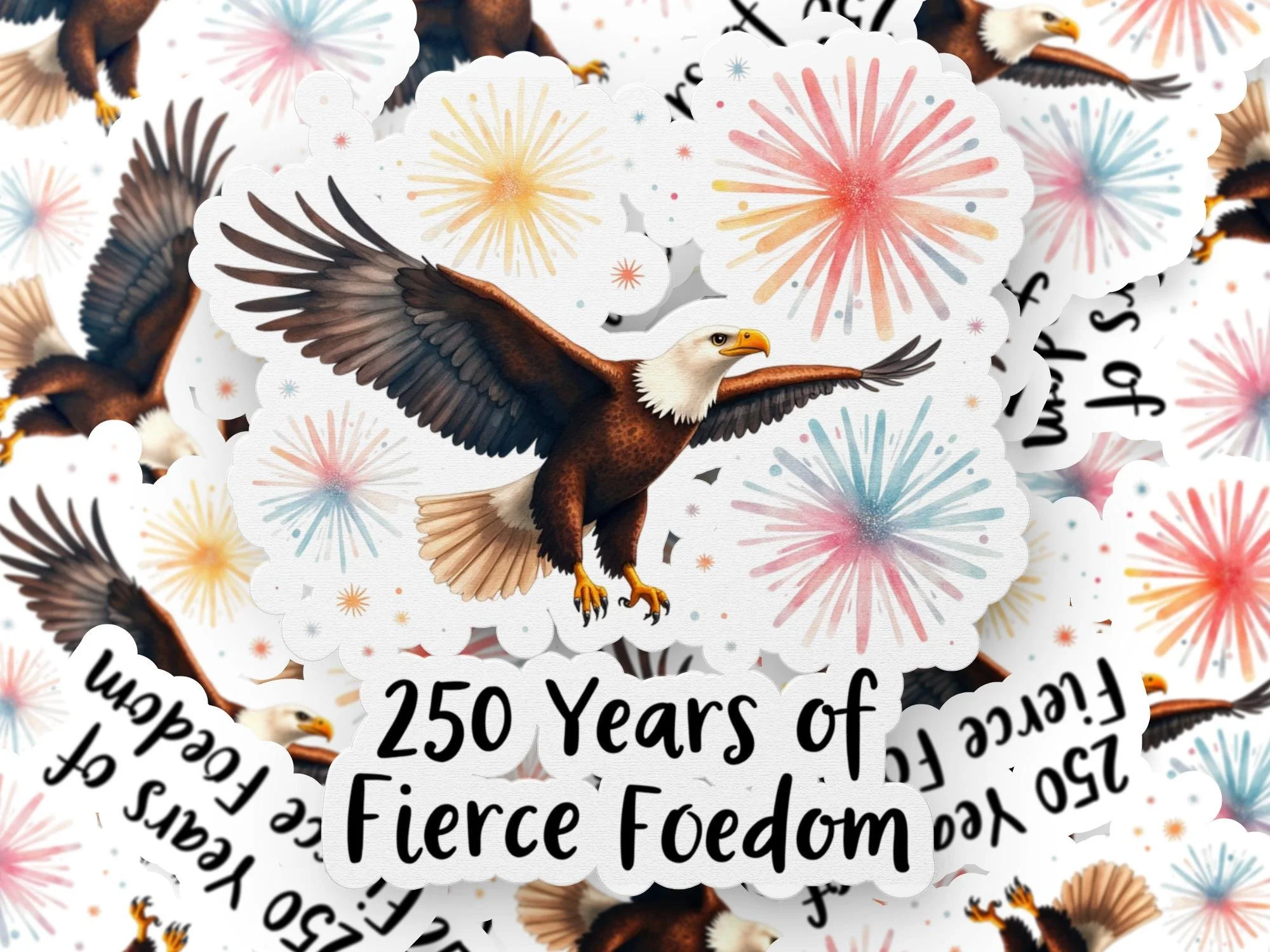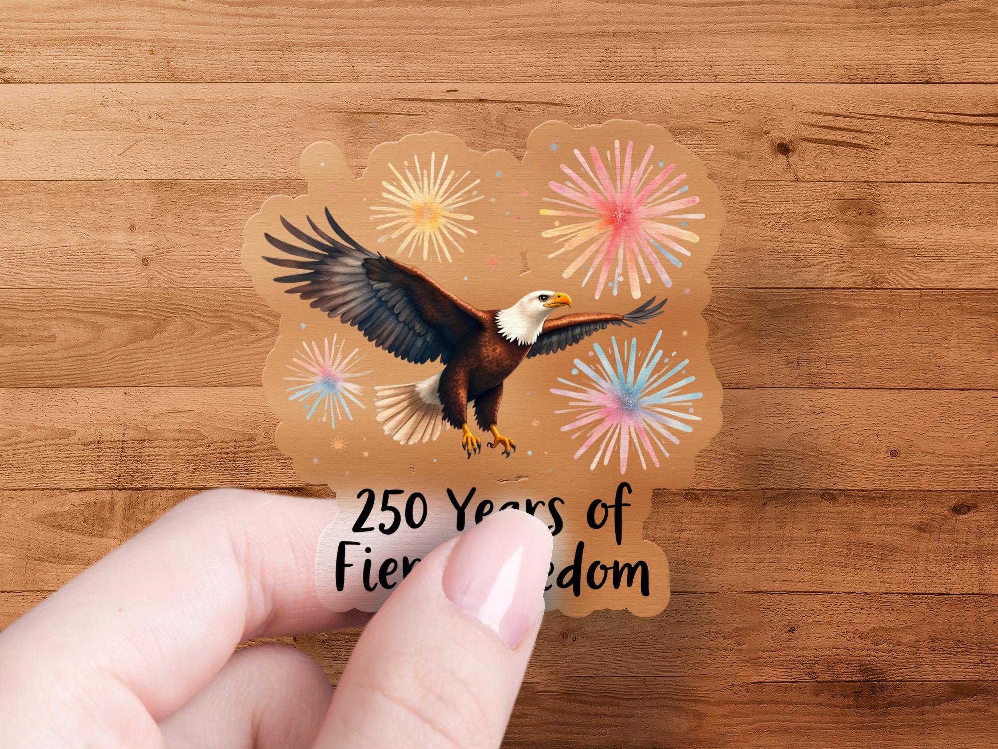 Celebrate American spirit with this vibrant sticker! Featuring a majestic eagle soaring amidst colorful fireworks, it's the perfect way to show your love for freedom and the USA. Ideal for decorating laptops, water bottles, journals, and more. Add a touch of patriotism to your everyday items with this unique, AI-assisted image. This sticker celebrates 250 years of fierce foedom. Join our Mailing list for the most up-to-date projects