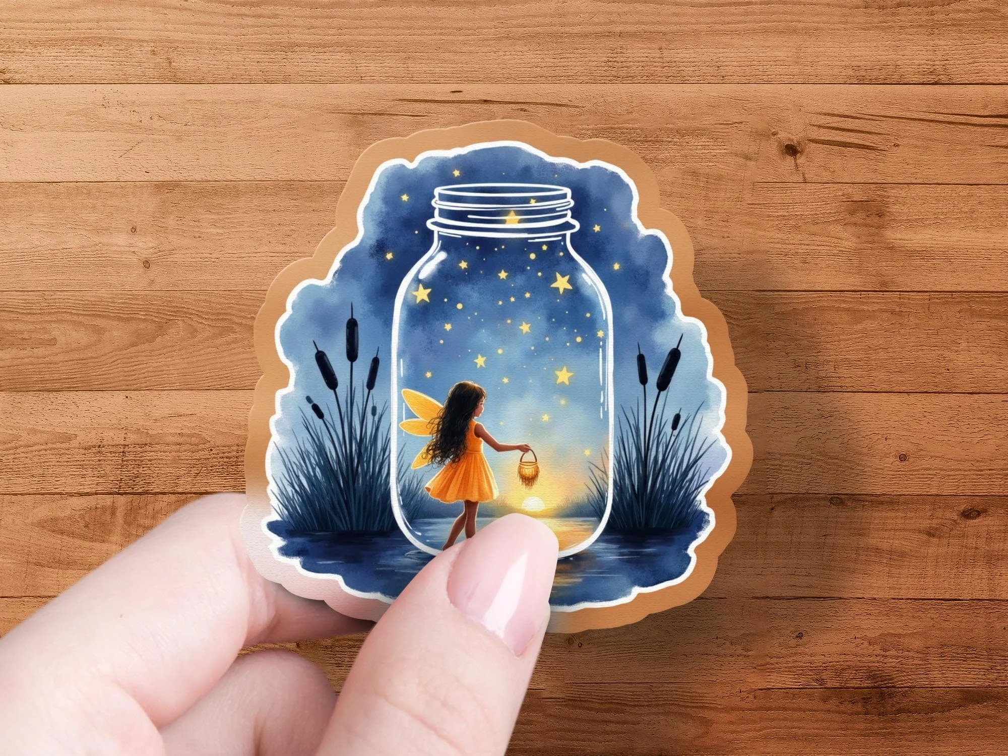 Fairy in a Jar Sticker, Whimsical Sticker Art, Cute Fairy Decal, Magical Scene Sticker, Fantasy Art Sticker, Jar of Stars Sticker