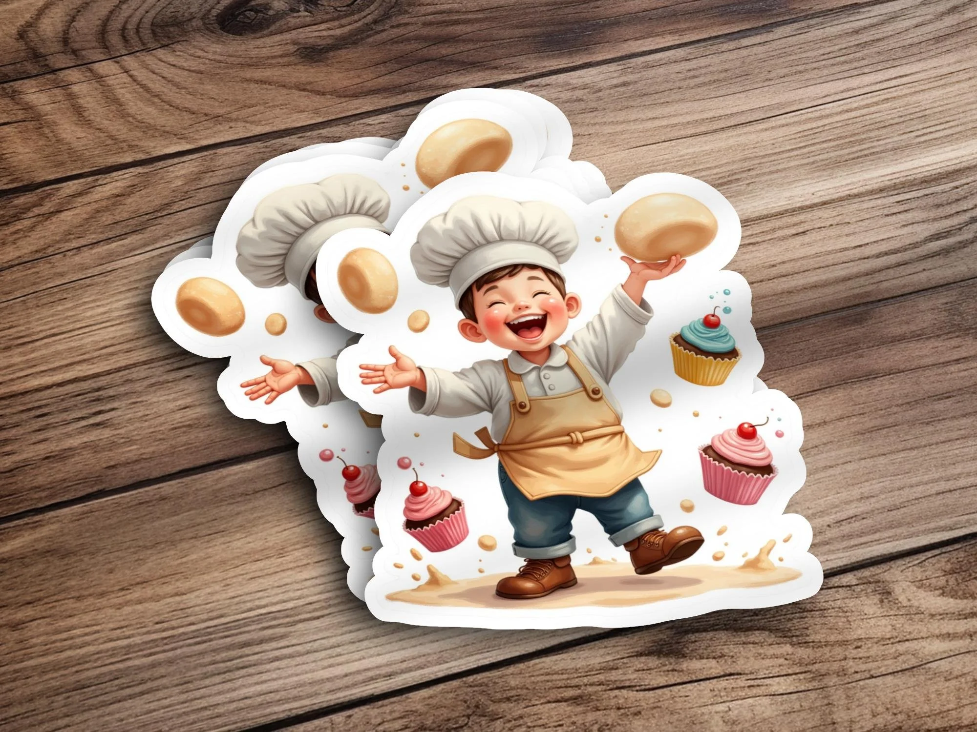 Joyful Baker Boy Sticker, Cupcake Sticker, Chef Sticker, Baking Lover Sticker, Foodie Gift, Cute Stickers, Laptop Decal, Water Bottle
