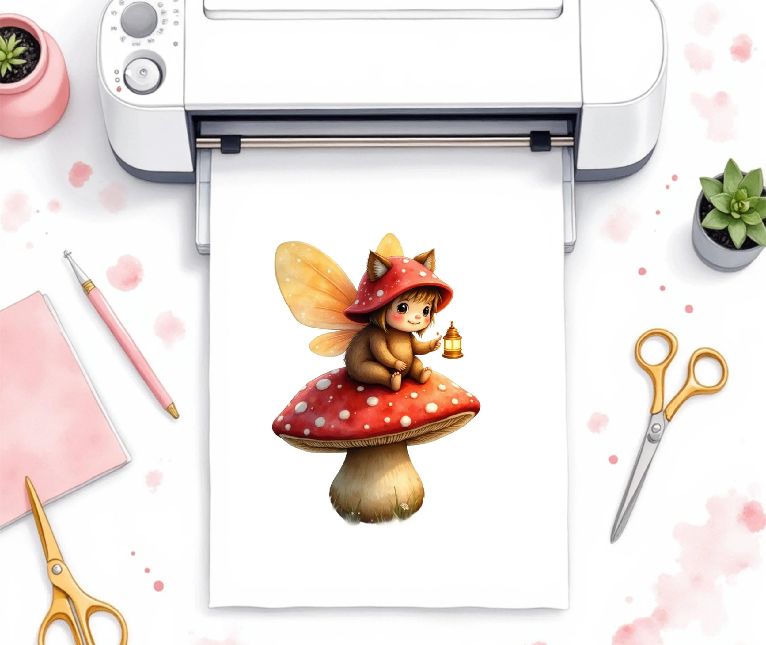 Add a touch of fantasy to your everyday items with this adorable Mushroom Fairy sticker. This charming design features a cute fairy with wings, wearing a mushroom cap, and holding a tiny lantern, while sitting on a mushroom. Perfect for adding a whimsical touch to laptops, water bottles, notebooks, and more. This unique and eye-catching design is sure to bring a smile to your face.