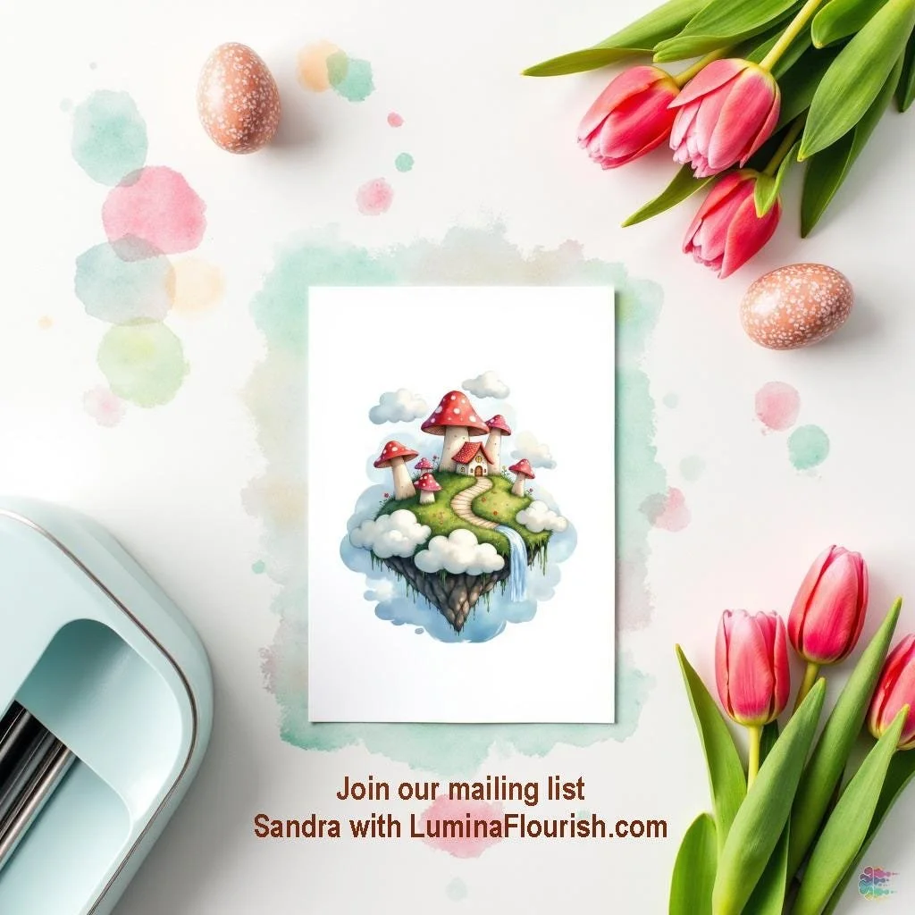 This whimsical sticker brings a touch of fantasy to your everyday items. The design features a charming mushroom house nestled on a floating island, complete with a winding path, vibrant flowers, and a cascading waterfall. Perfect for adding a touch of magic to laptops, water bottles, notebooks, and more. This eye-catching sticker is sure to spark joy and conversation wherever you go.
