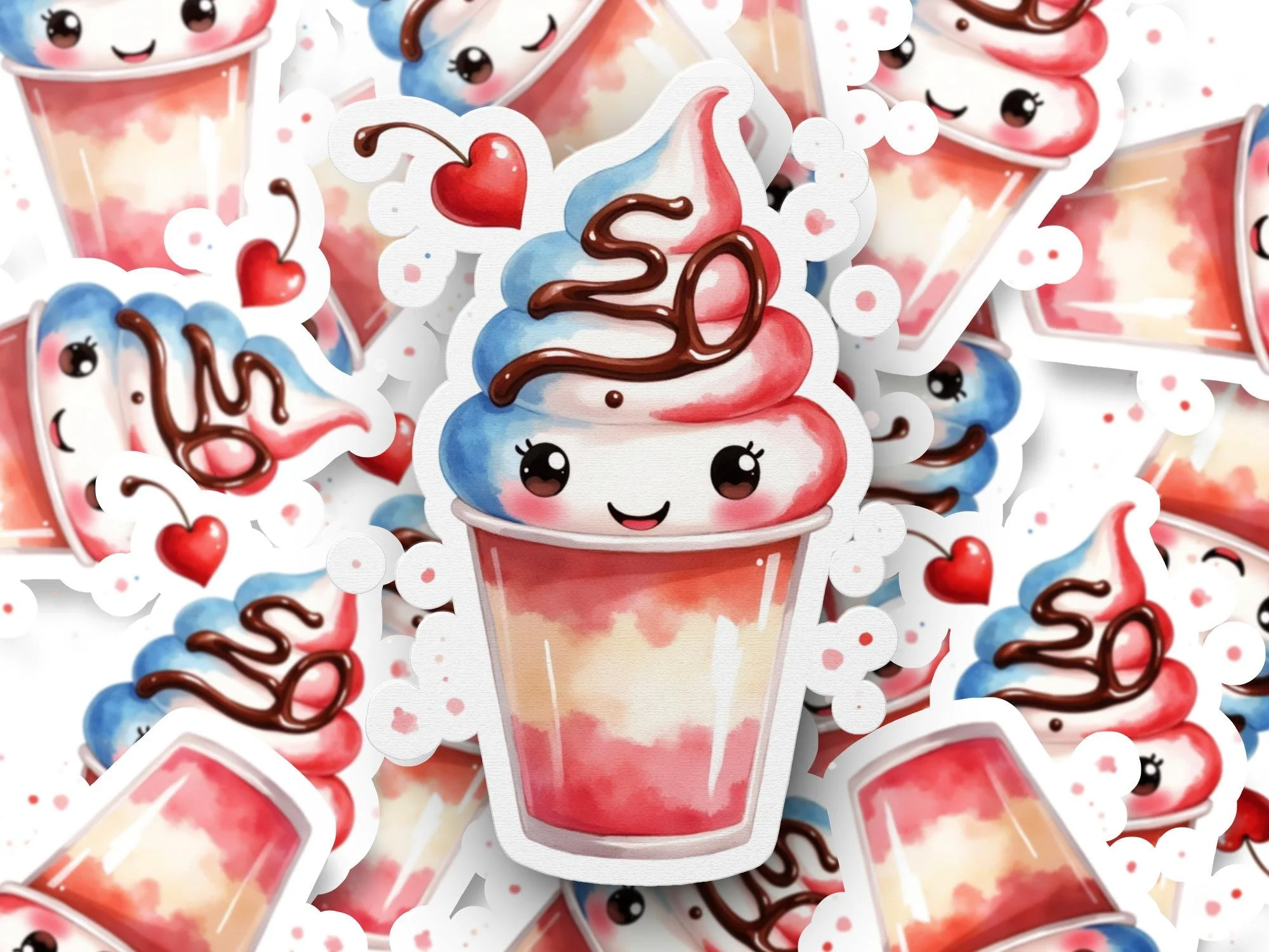 Add a touch of patriotic flair to your belongings with this vibrant sticker. Featuring a refreshing soda bottle adorned with the American flag and surrounded by festive stars, this design is perfect for celebrating the 4th of July or showcasing your American pride. This AI assisted image sticker captures the essence of summer celebrations.
