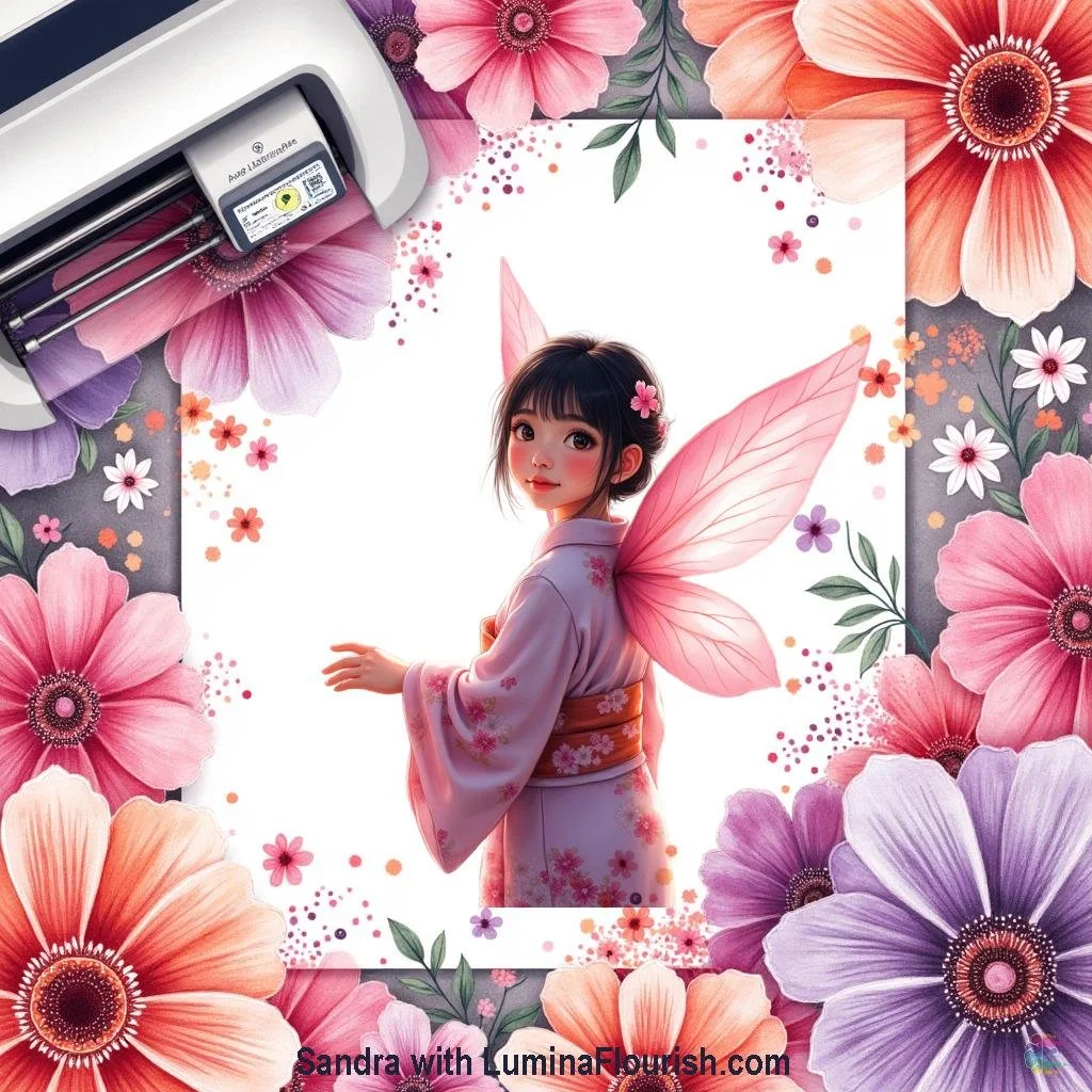 This adorable sticker is perfect for adding a touch of whimsy to your everyday items. Featuring a charming fairy girl in a pink kimono, this design is both stylish and cute. Ideal for personalizing your belongings with a unique artistic touch.