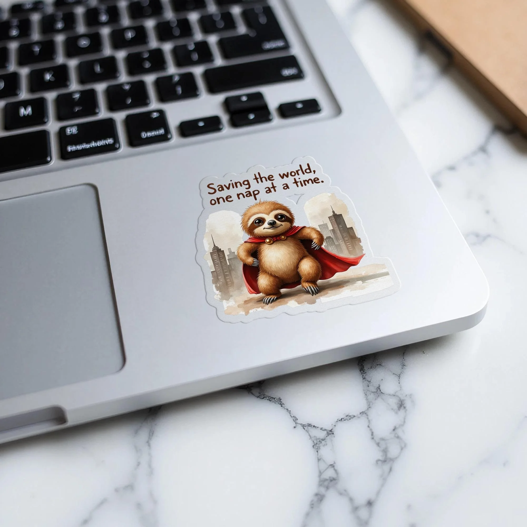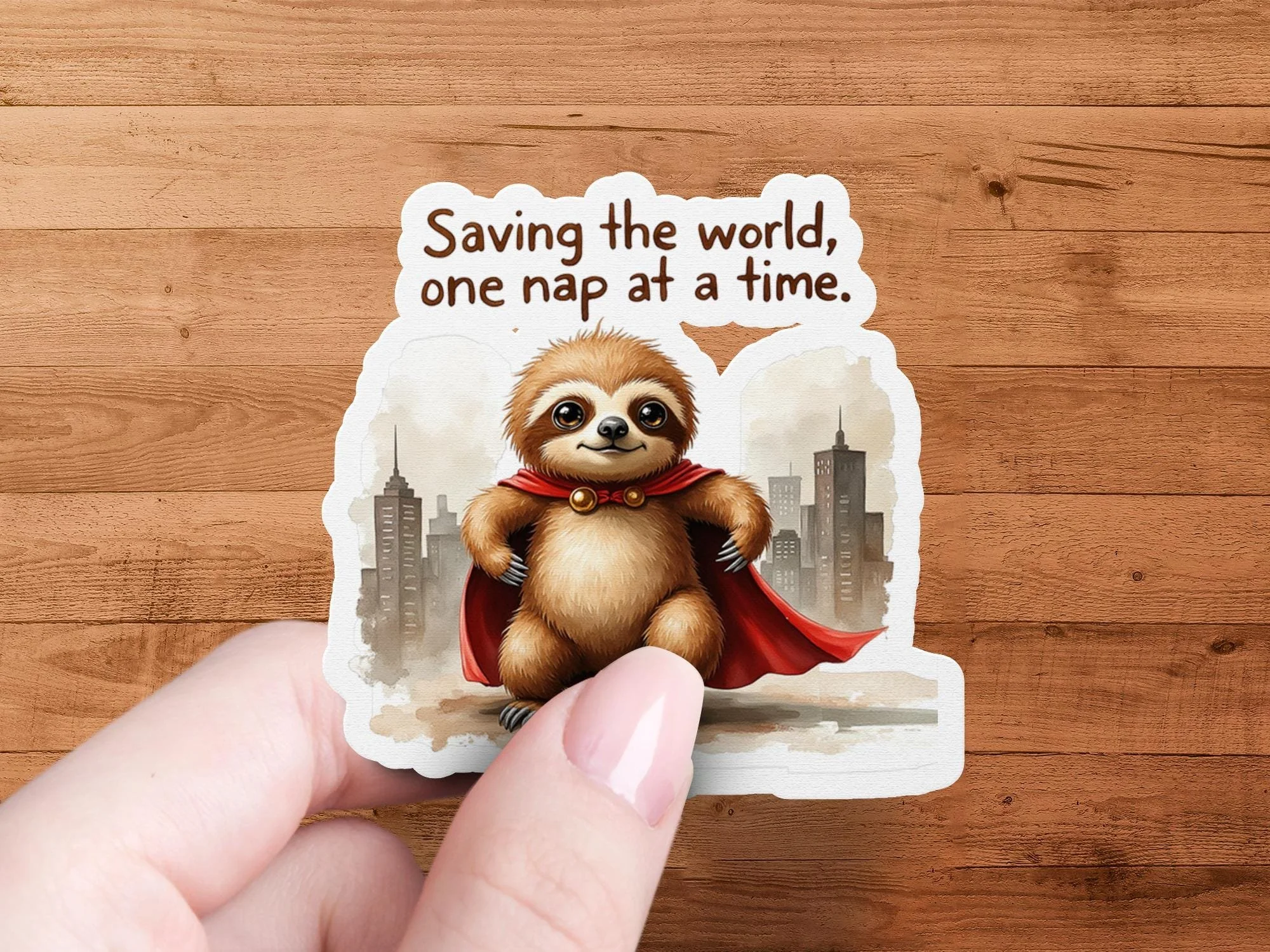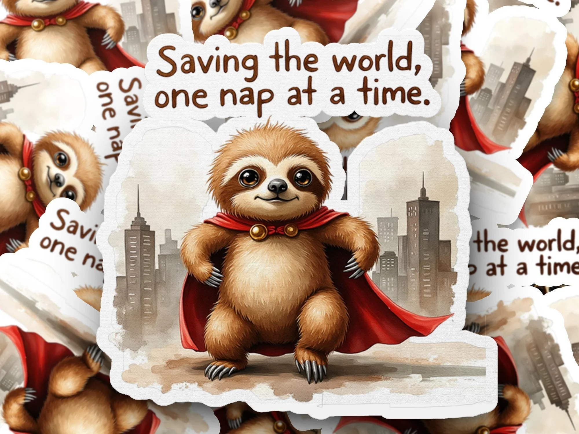 Add a touch of whimsy and heroism to your life with this adorable "Saving the world, one nap at a time" sloth sticker. Featuring a charming sloth dressed as a superhero with a flowing red cape, this design is sure to bring a smile to your face and a sense of lighthearted motivation. The image is AI assisted with my creative style.