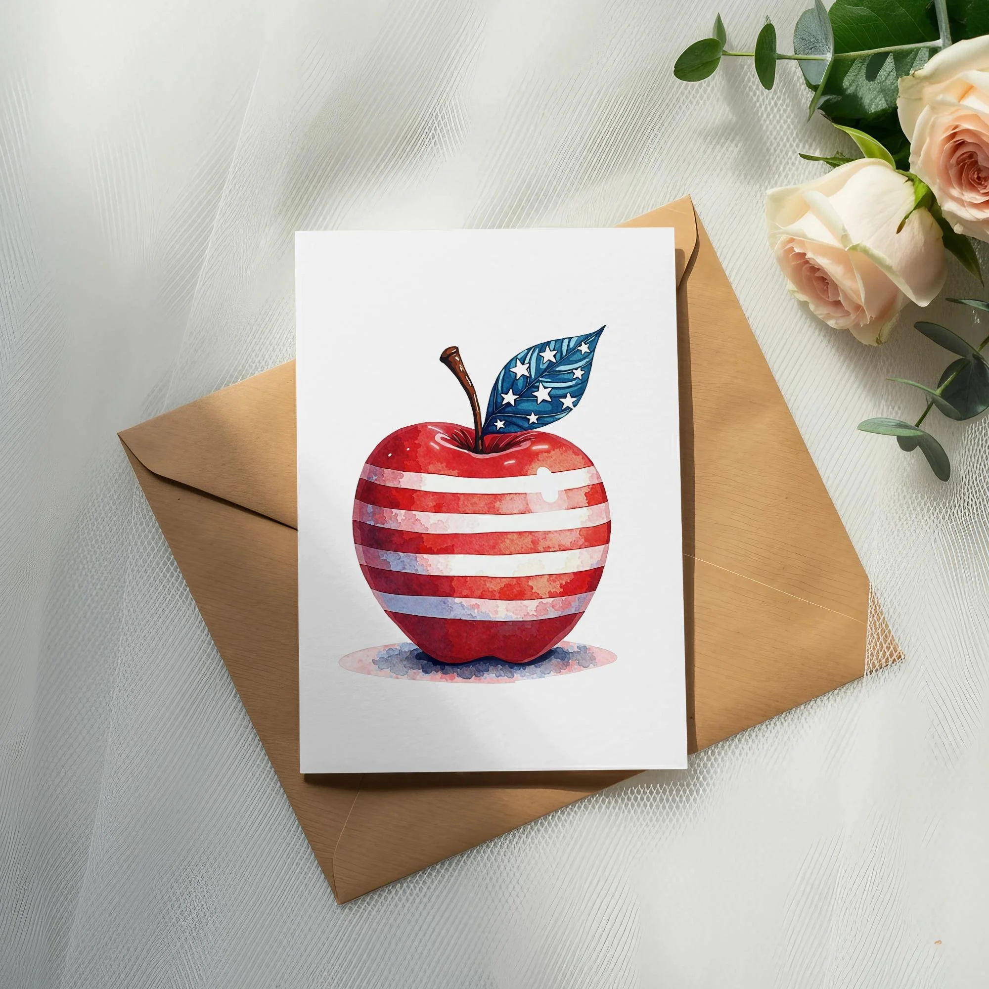 Celebrate your patriotism with this Vintage American Flag Apple Sticker. Featuring a red apple adorned with traditional American flag stripes and a star-studded leaf, this decal is perfect for adding a touch of USA pride to your belongings. Ideal for laptops, water bottles, notebooks, and more, this sticker will show off your love for America on Independence Day and all year round. Easy to apply and durable, it's a great way to express your patriotic spirit.