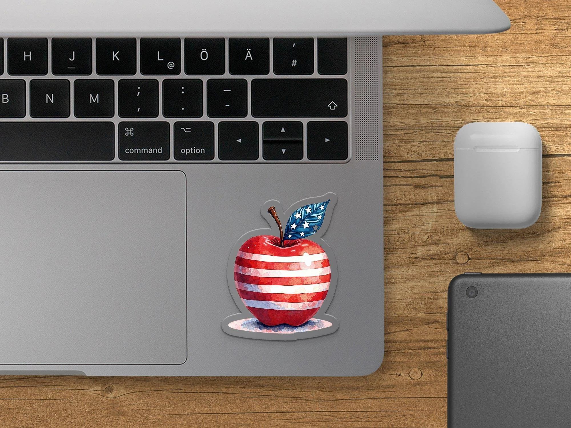 Vintage American Flag Apple Sticker, Patriotic Red White and Blue Apple Decal, Independence Day Decor, USA Pride Sticker