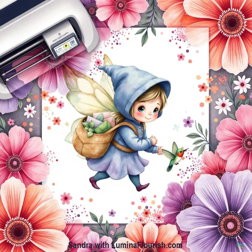 Whimsical Fairy Post Girl Sticker, Cute Hummingbird Stickers, Fantasy Decal, Magical Mail Delivery Art, Charming Gift for Girls