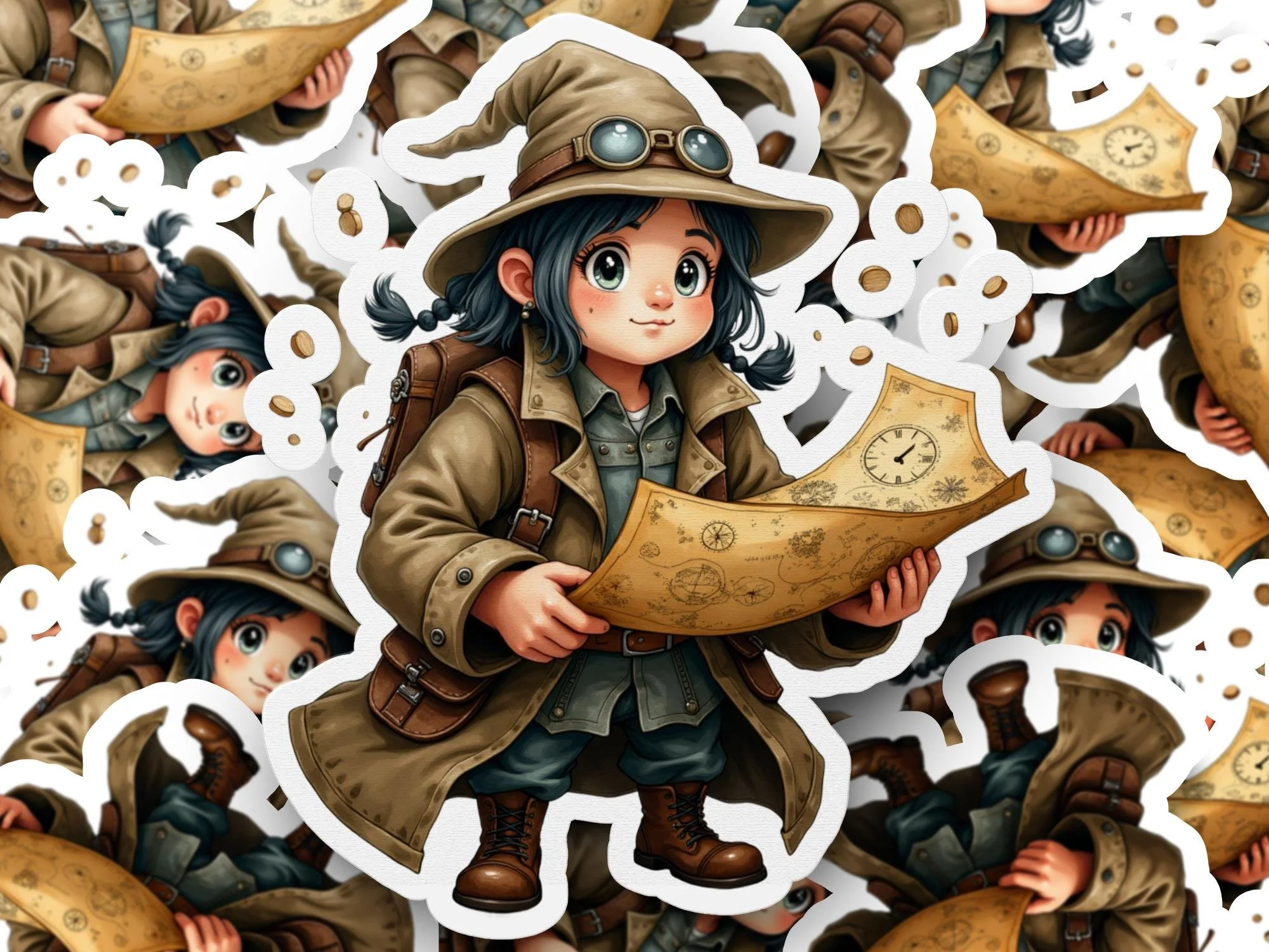 Whimsical Map Reader Sticker, Cute Adventurer Girl, Fantasy Explorer Decal, Kawaii Journey Sticker, Steampunk Flair, Unique Art Sticker
