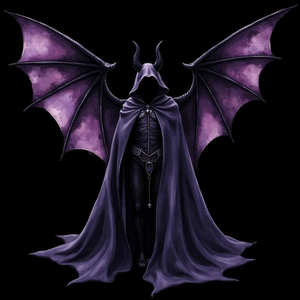 Add a touch of gothic horror to your world with this "Winged Horror" sticker. The haunting design features a cloaked and horned figure with striking purple wings, evoking a sense of dark fantasy and mystery. Perfect for those who love the darker side of art and want to make a statement.