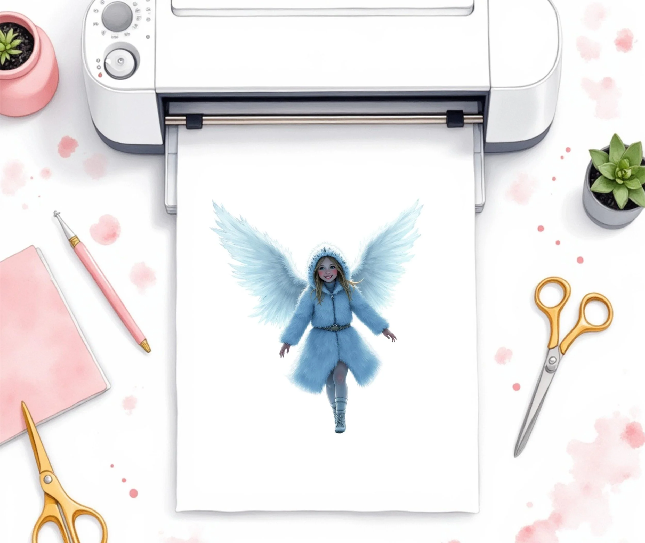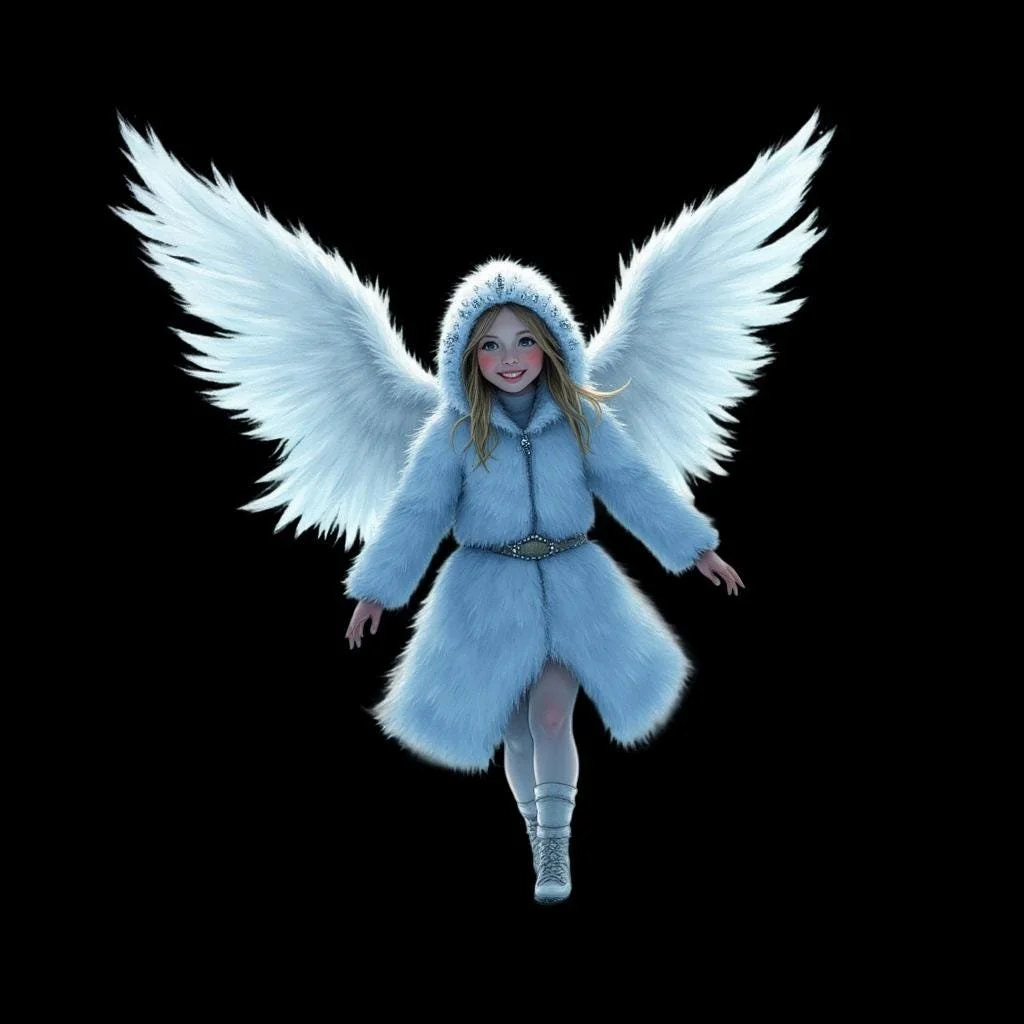 Winter Angel Sticker, Winged Girl Art, Cute Angelic Decal, Fur Coat Angel, Fantasy Art Sticker, Magical Child Sticker