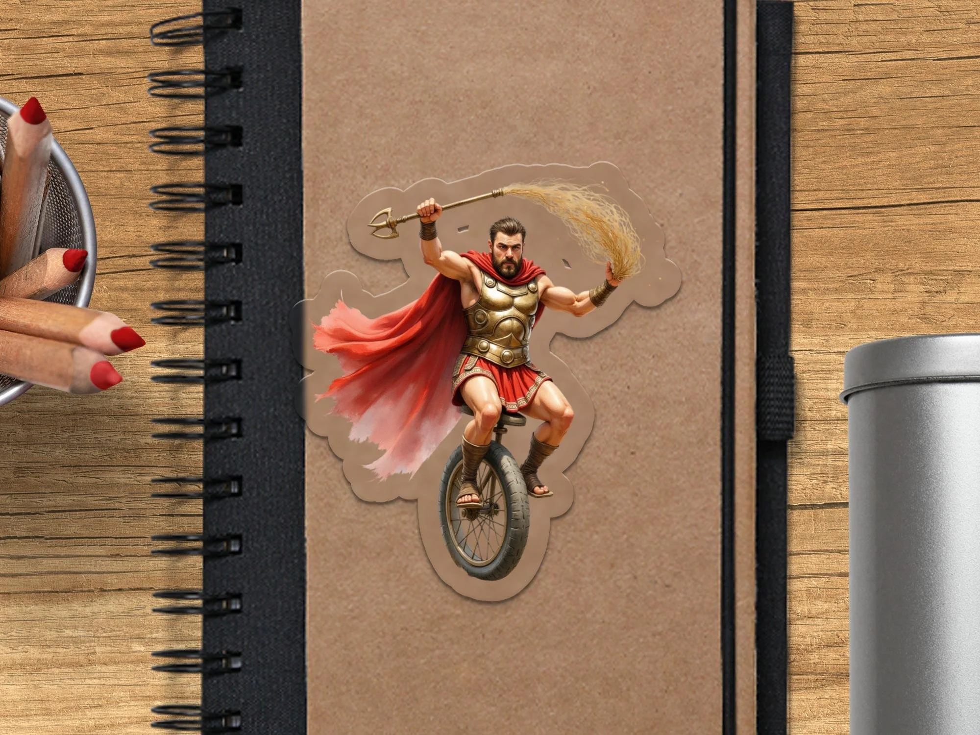 Zeus on a Unicycle Sticker, Funny God Sticker, Greek Mythology Sticker, Olympian God Gift, Quirky Stickers, Unique Stickers, Cool Stickers