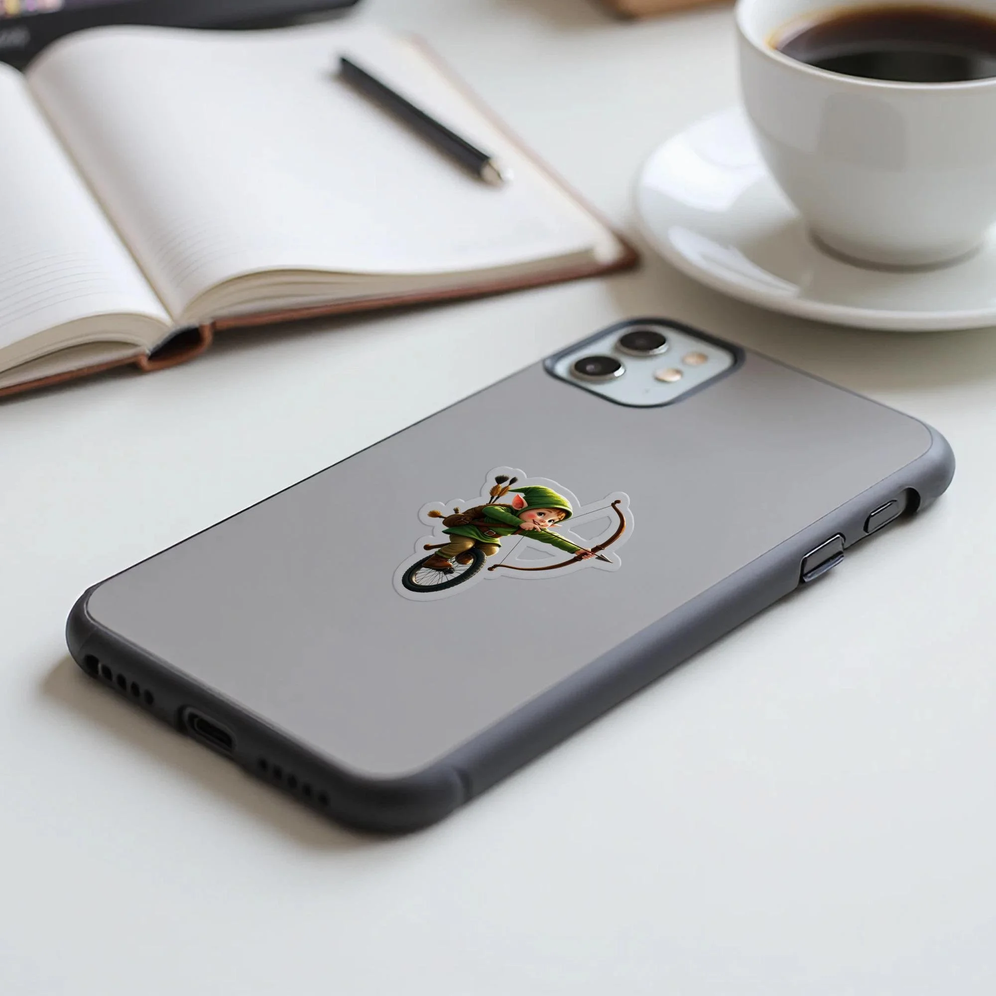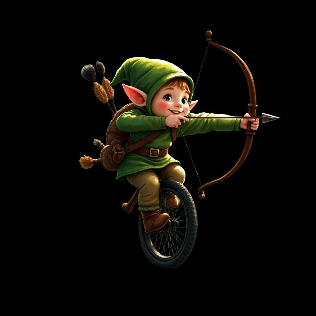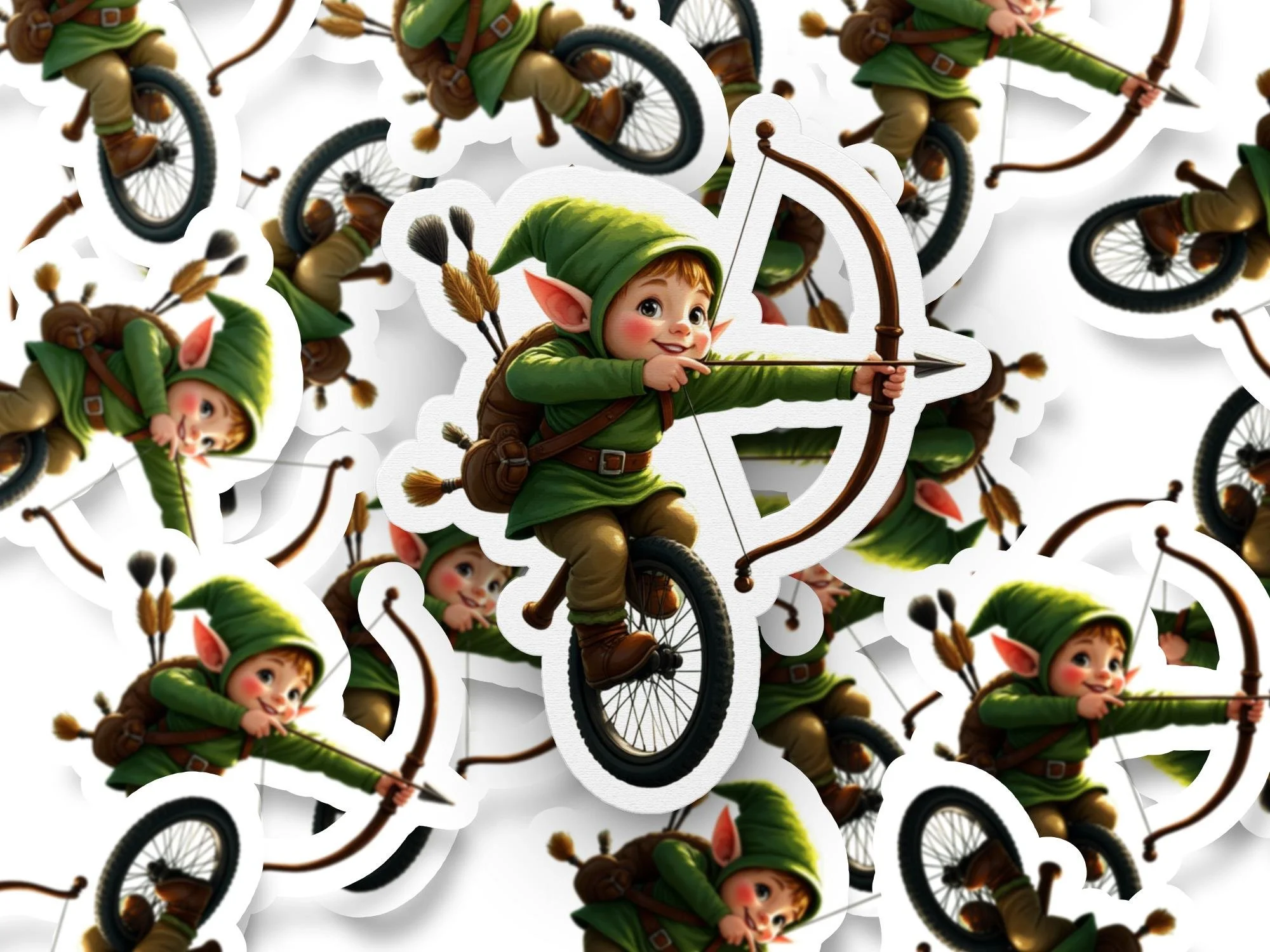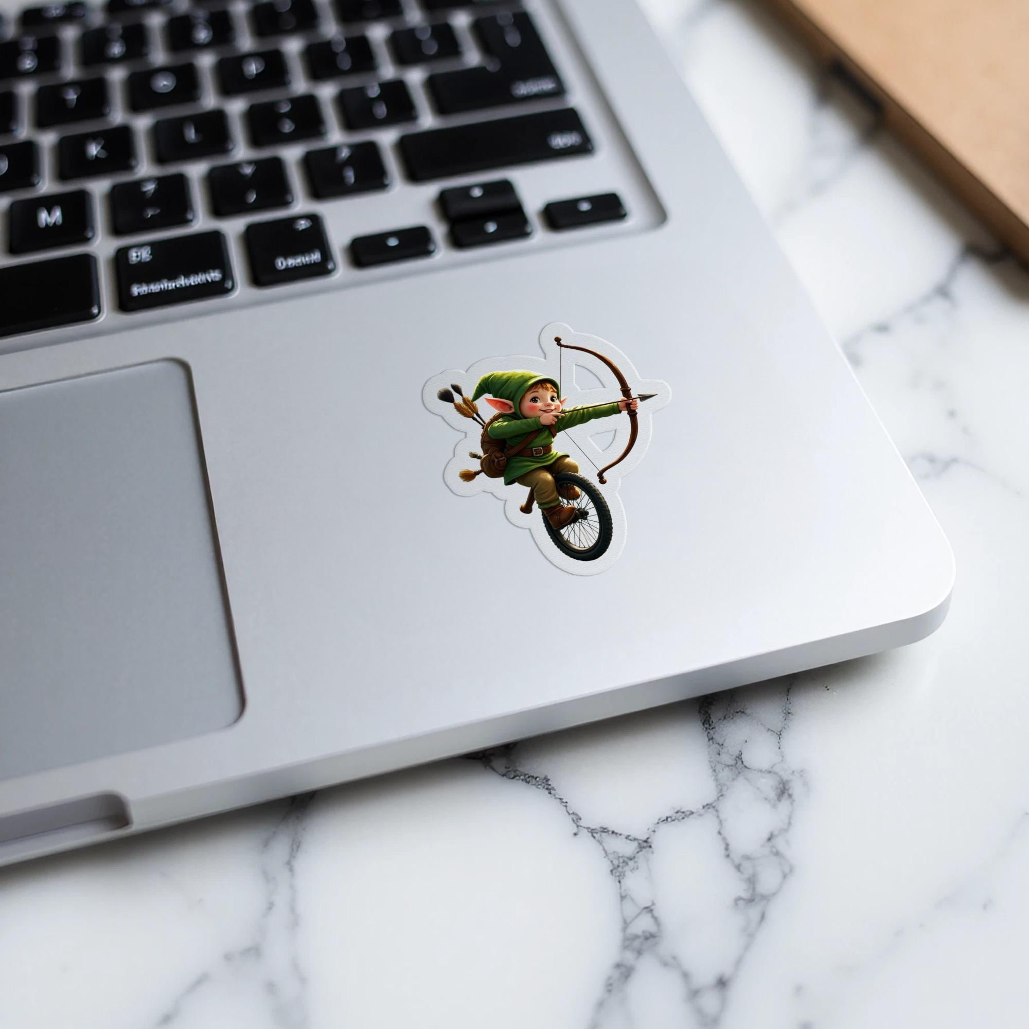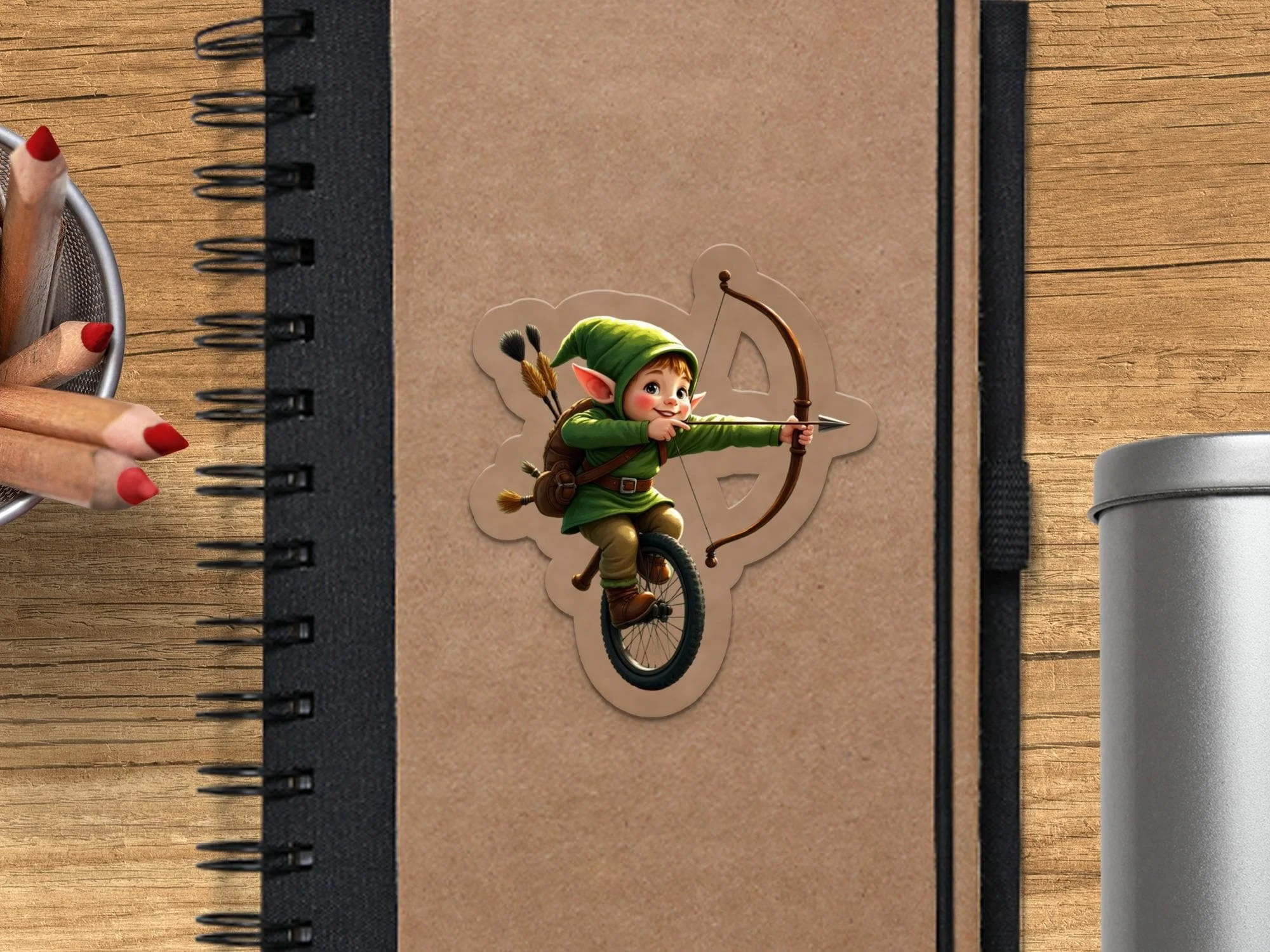 Elf Archer Sticker, Unicycle Rider, Fantasy Sticker, Cute Elf, Whimsical Art, Unique Stickers, Gift Idea, Archery Lover, Elf on Wheel