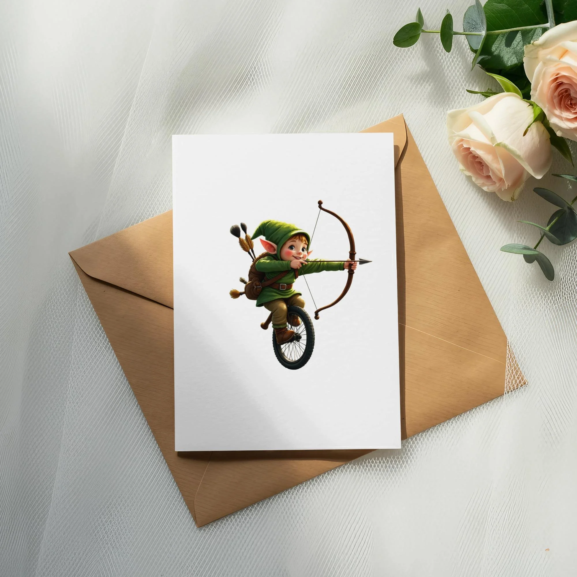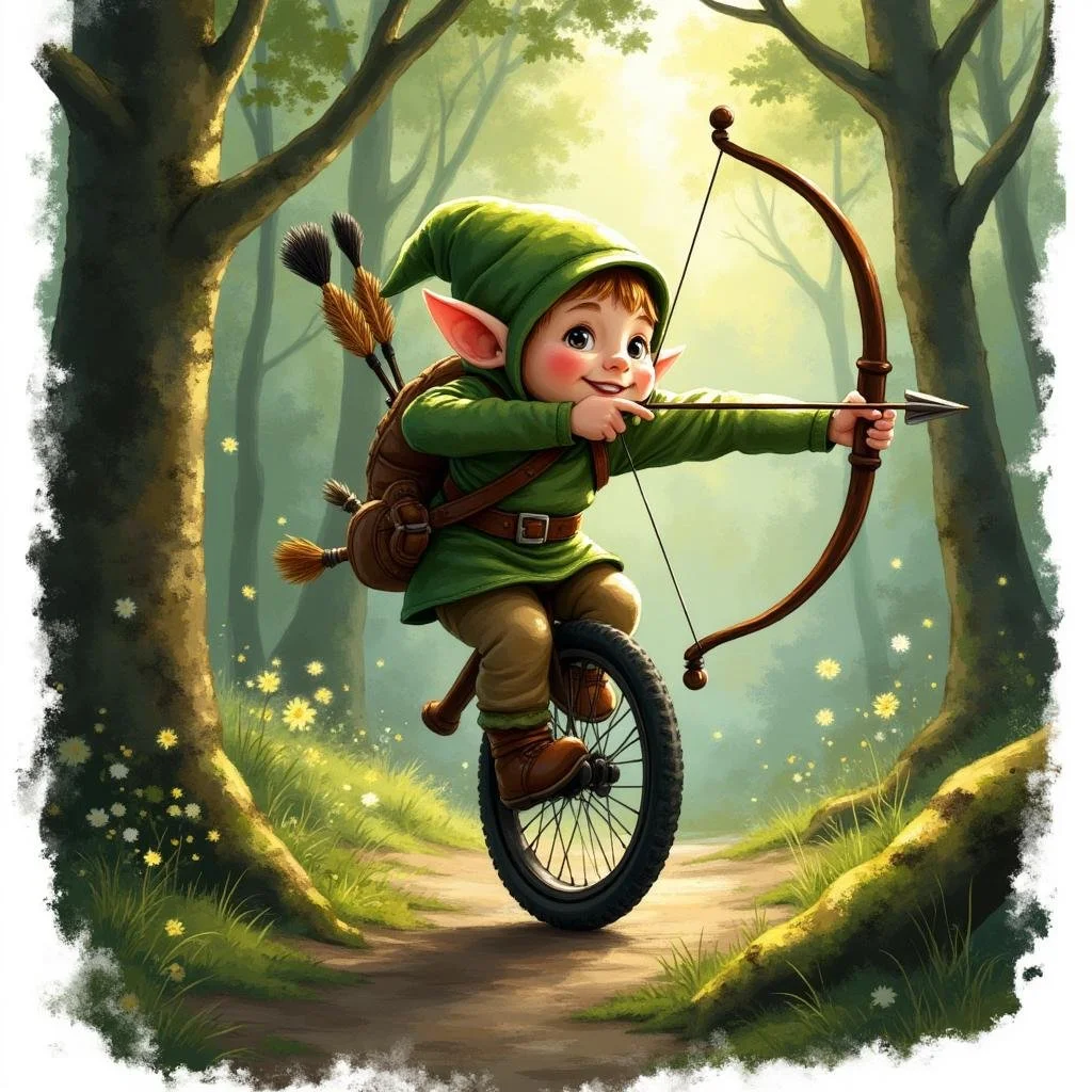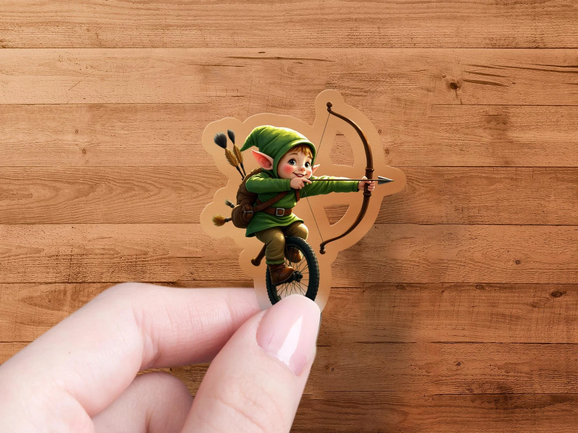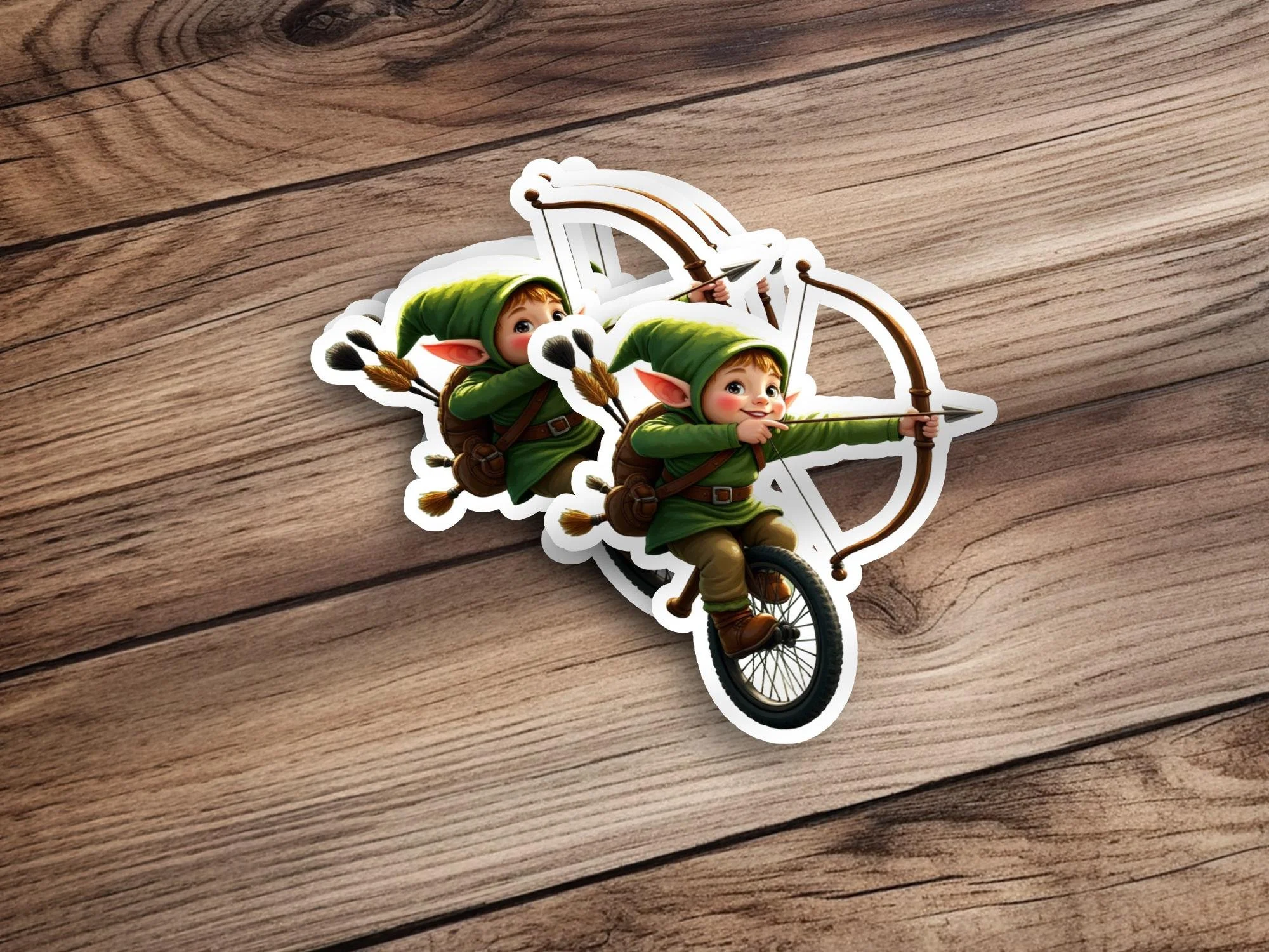 Elf Archer Sticker, Unicycle Rider, Fantasy Sticker, Cute Elf, Whimsical Art, Unique Stickers, Gift Idea, Archery Lover, Elf on Wheel
