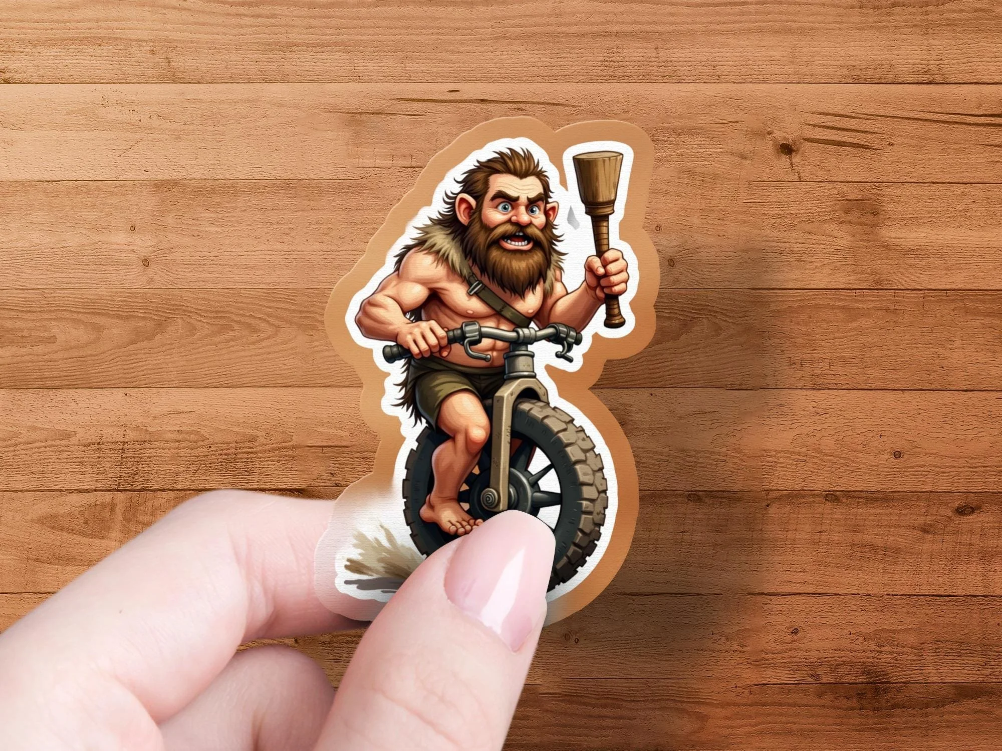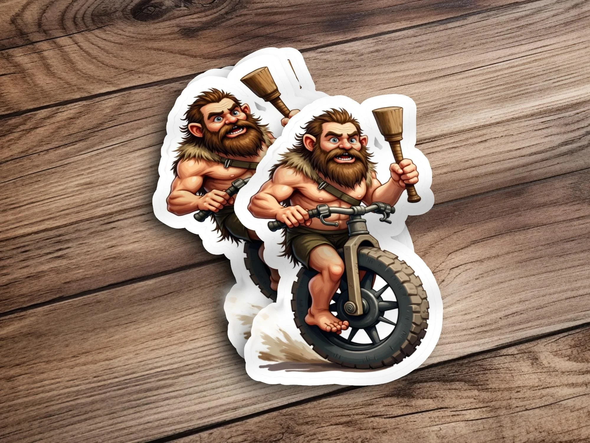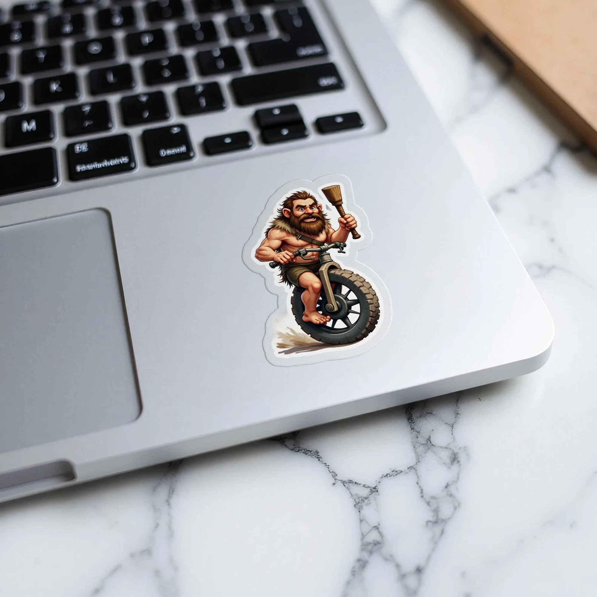 Caveman Unicycle Sticker, Funny Primitive Man, Unusual Transportation, Barbarian Art, Strongman, Humor Decal, Unique Gift, AI Assisted
