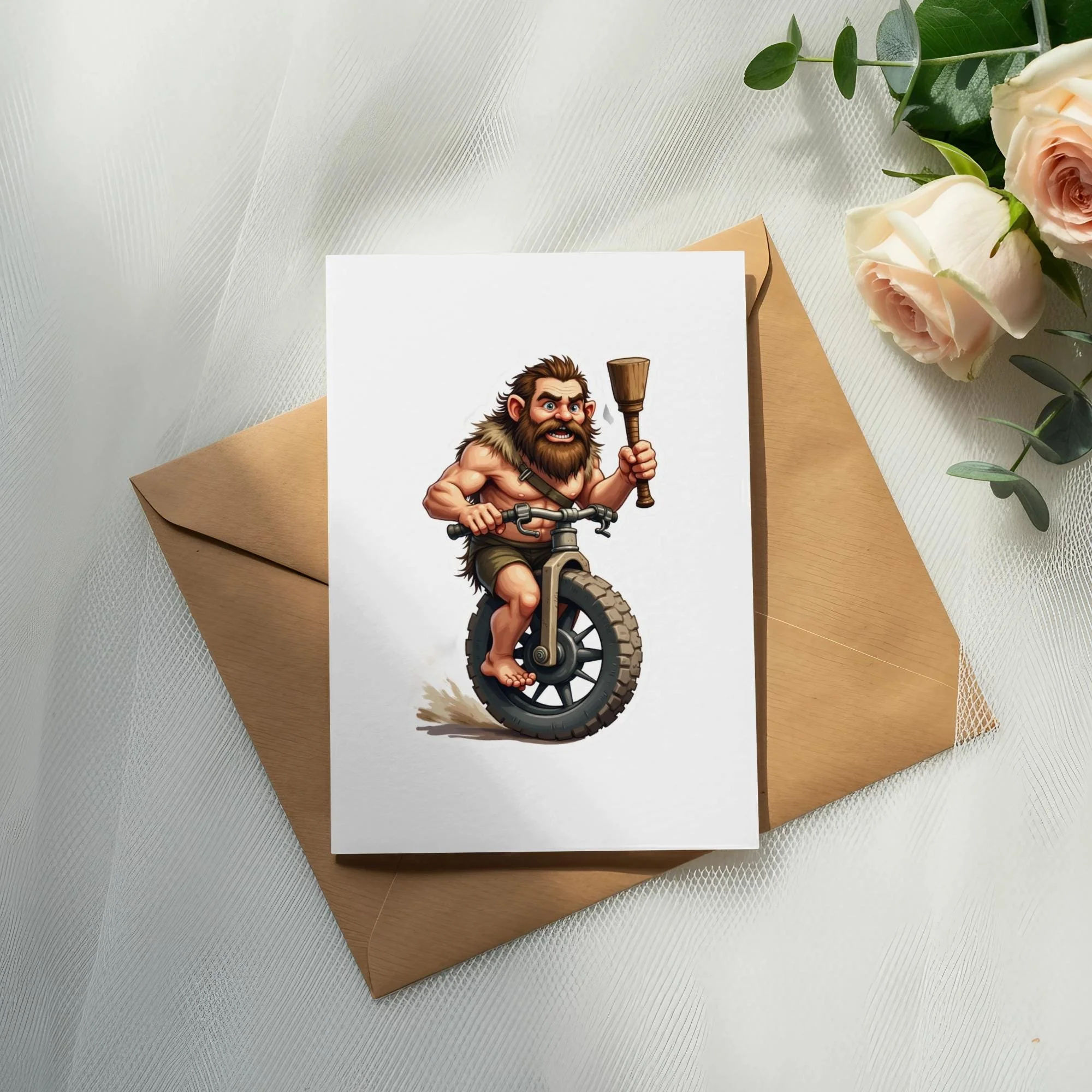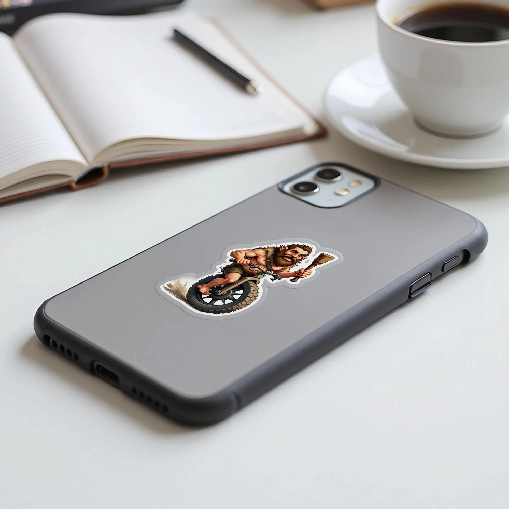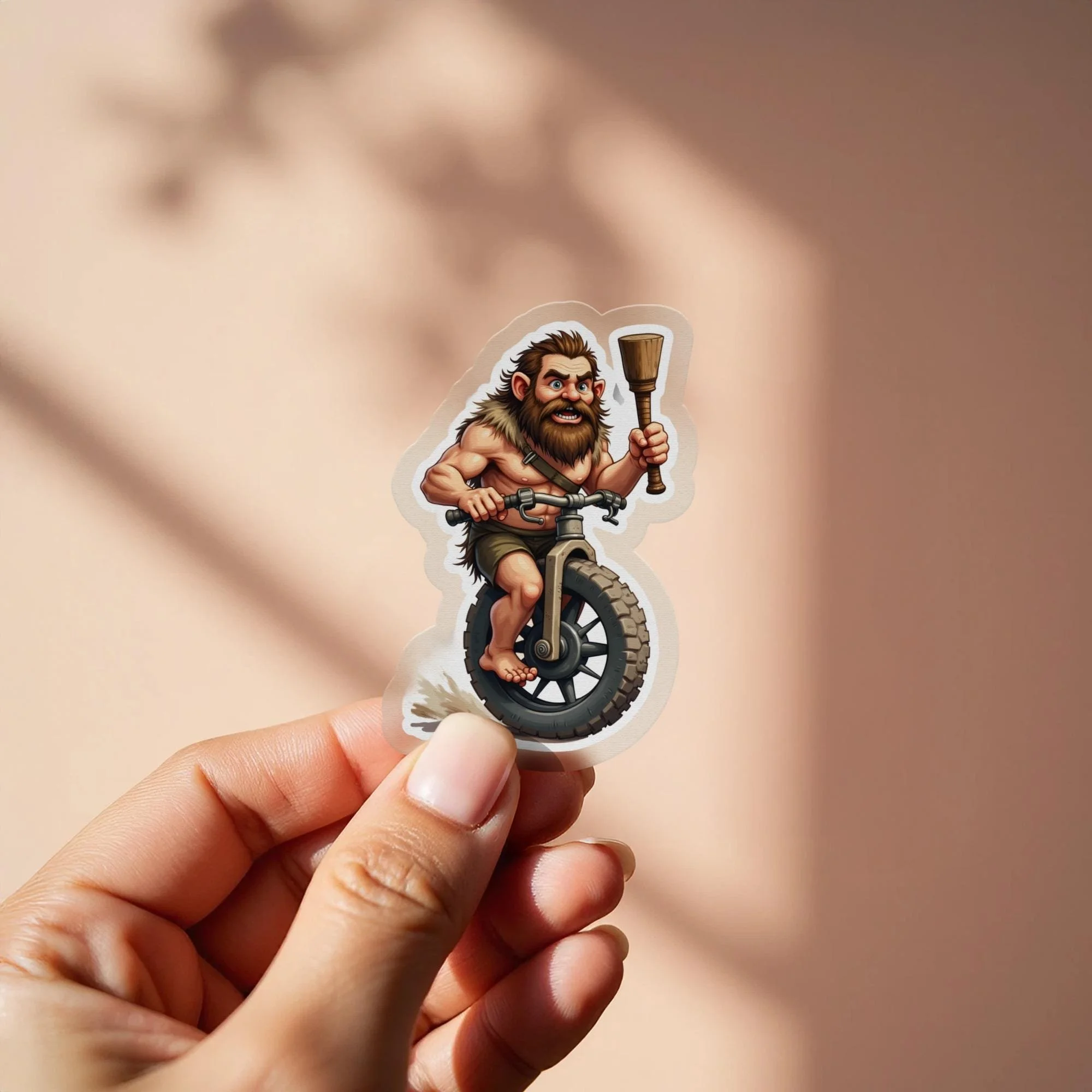 Caveman Unicycle Sticker, Funny Primitive Man, Unusual Transportation, Barbarian Art, Strongman, Humor Decal, Unique Gift, AI Assisted