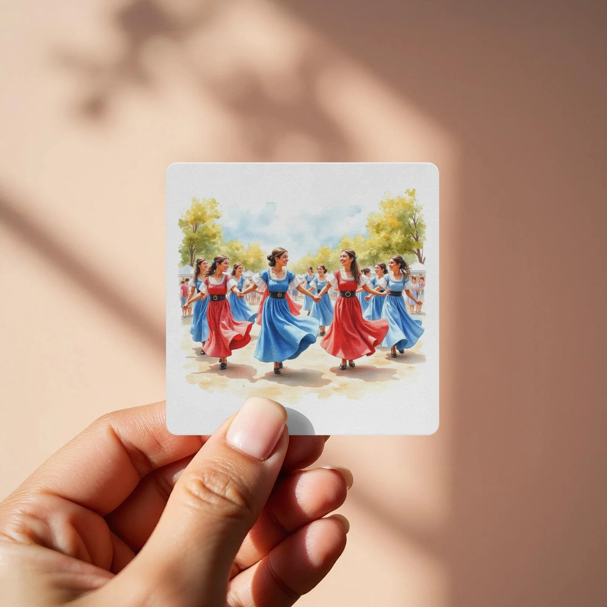Idaho Folk Dance Sticker, Traditional Costume, Women Dancing, Watercolor Art, Cultural Celebration, Festive, Unique Idaho Sticker