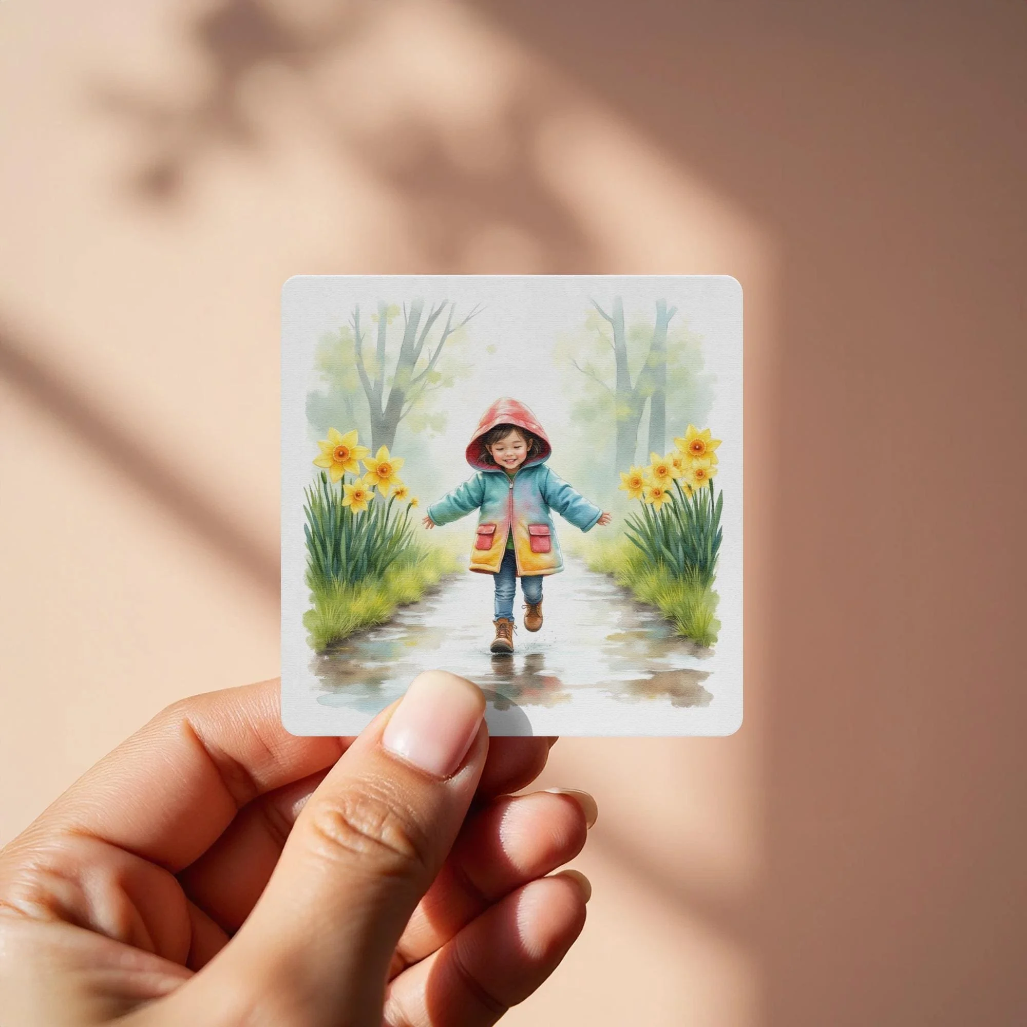 Idaho Girl Daffodil Sticker, Happy Girl, Rainy Day, Watercolor, Floral Sticker, Cute Girl, Idaho Sticker, Gift for Her, Laptop Stickers