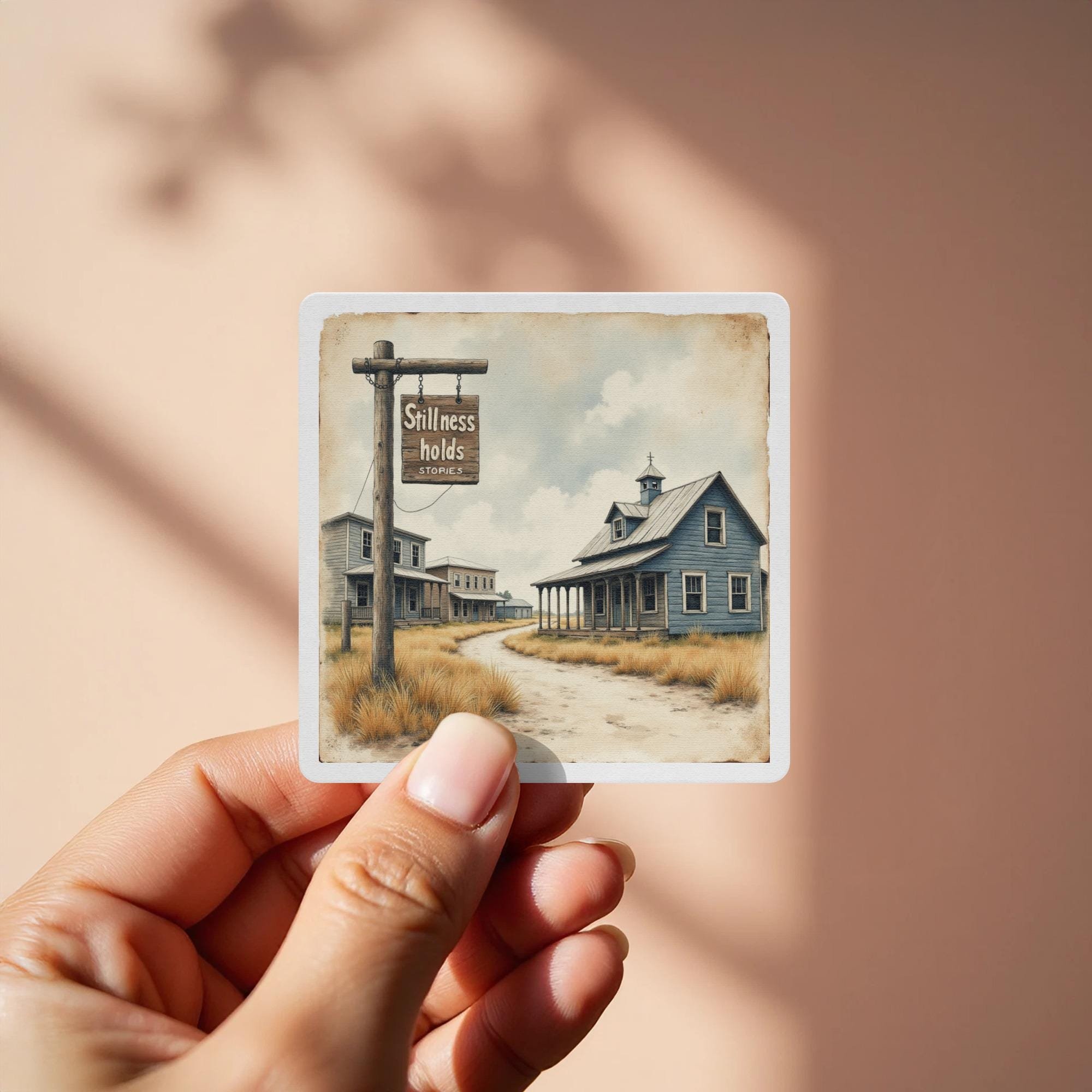 Stillness Holds Stories Sticker, Idaho, Western Town, Vintage Houses, Rustic Charm, Farmhouse Decor, Weathered Sign, Road Sticker