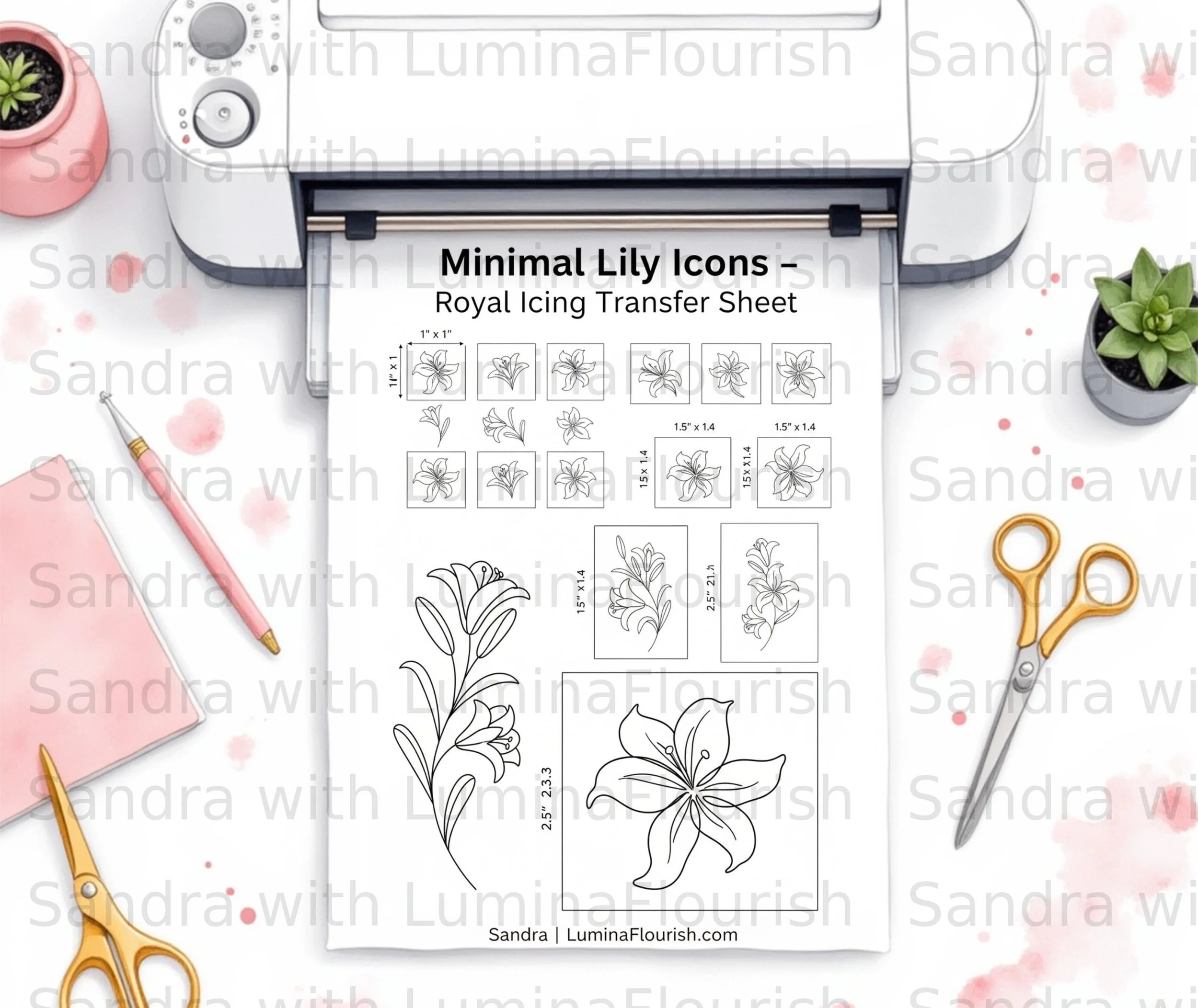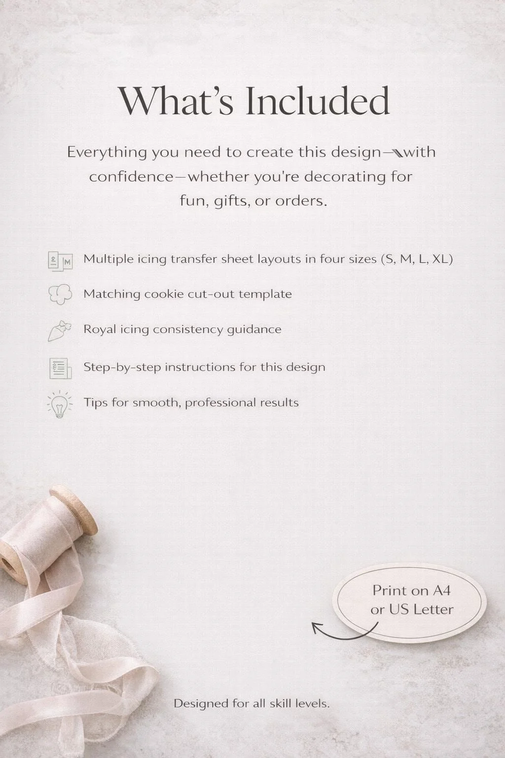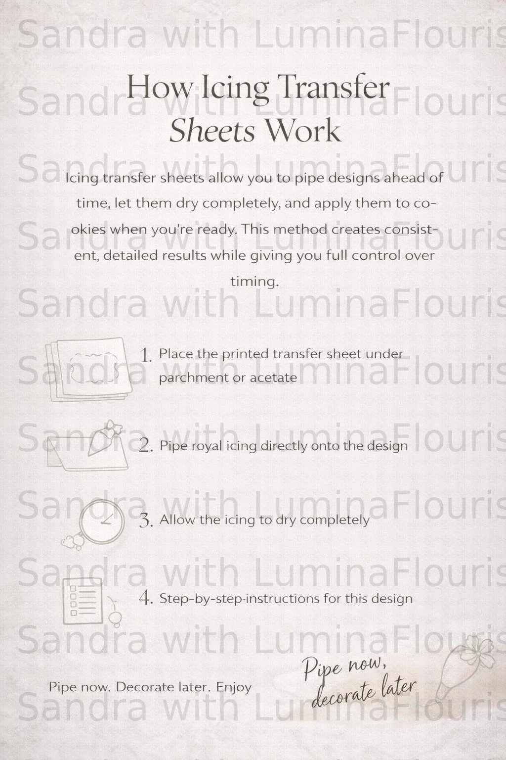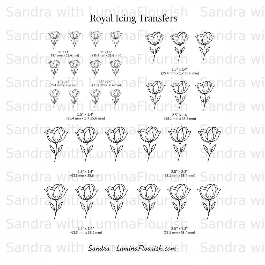 Rose Royal Icing Transfers Template, Cookie Decorating Stencil (Digital Art, Printable Design)