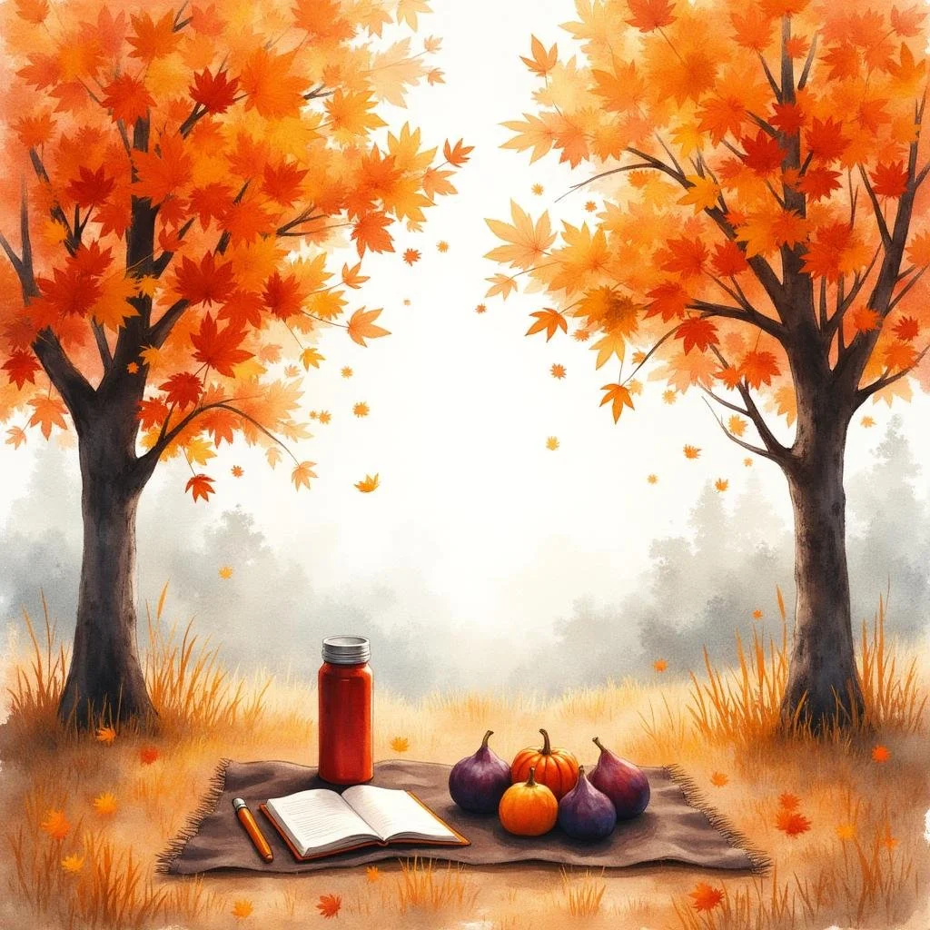 Add a touch of autumn beauty to your belongings with this "Autumn Picnic" sticker. This unique design features a cozy autumnal scene with fall leaves, pumpkins, and figs, creating a warm and inviting atmosphere. Perfect for those who love the fall season and its cozy vibes.