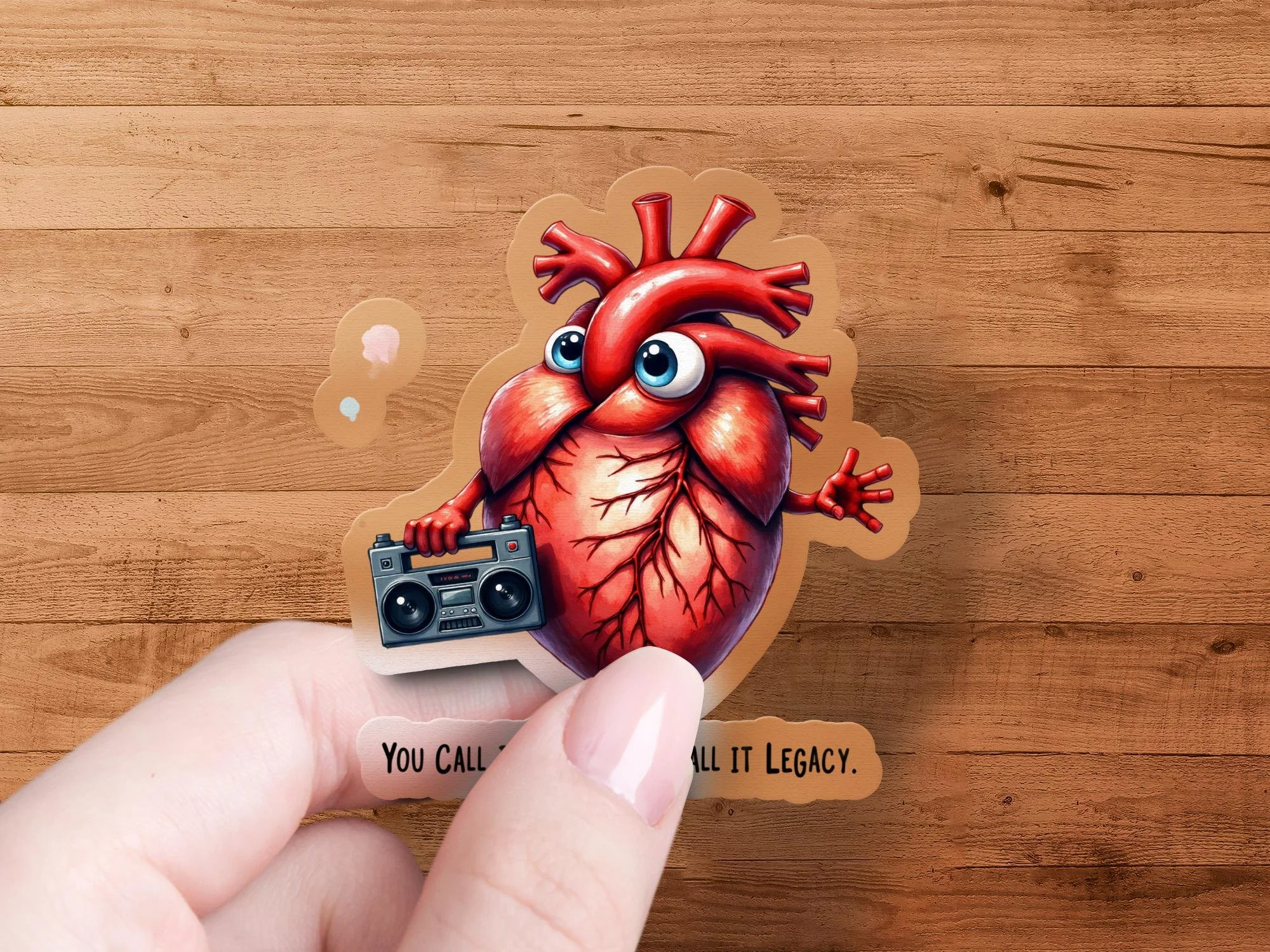 Brighten up your day with this "Legacy Heart" sticker! This unique design features an anatomical heart holding a boombox, with the phrase "You call it burnout, I call it legacy."