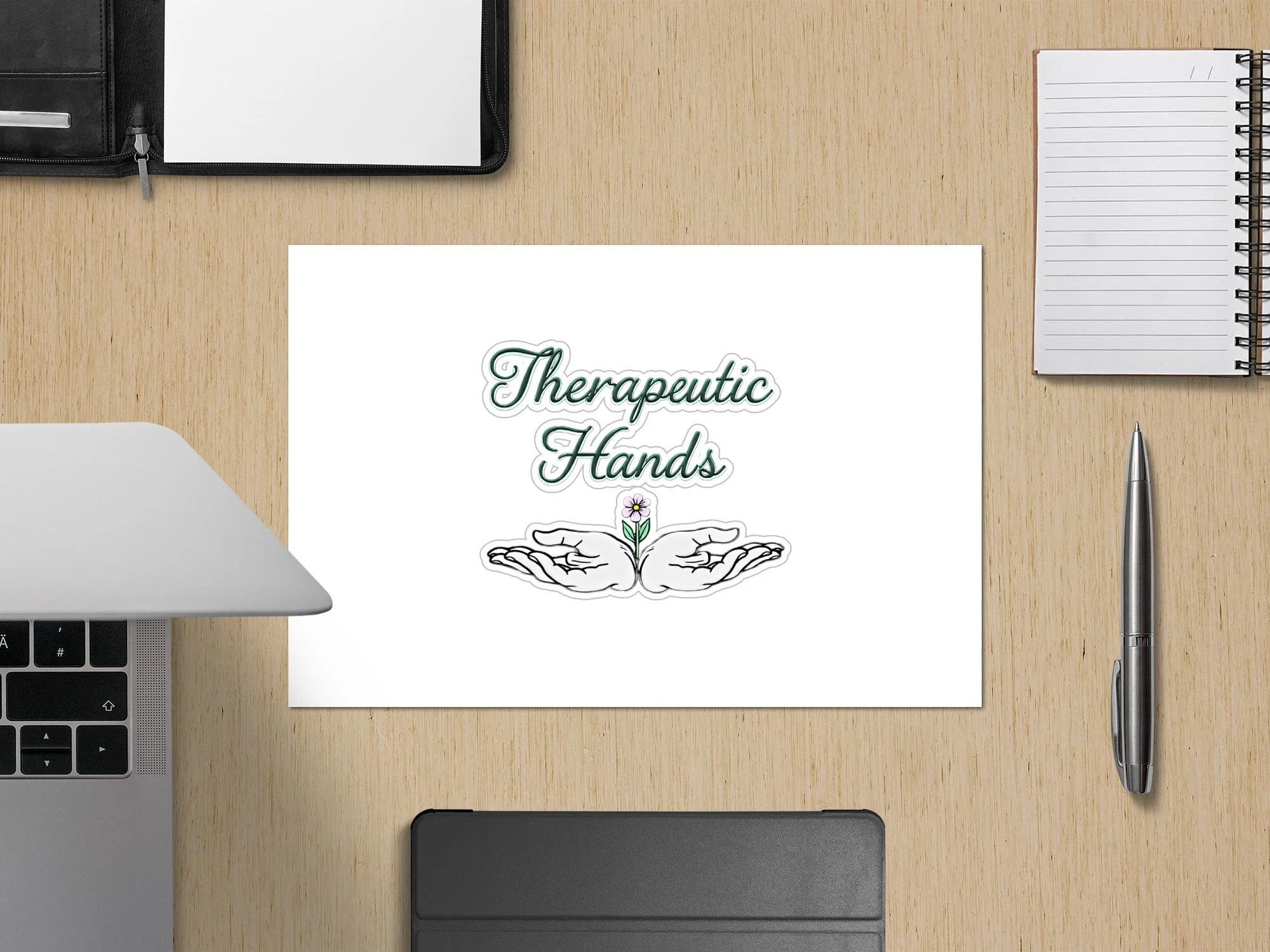 "Therapeutic Hands" is written in an elegant script.